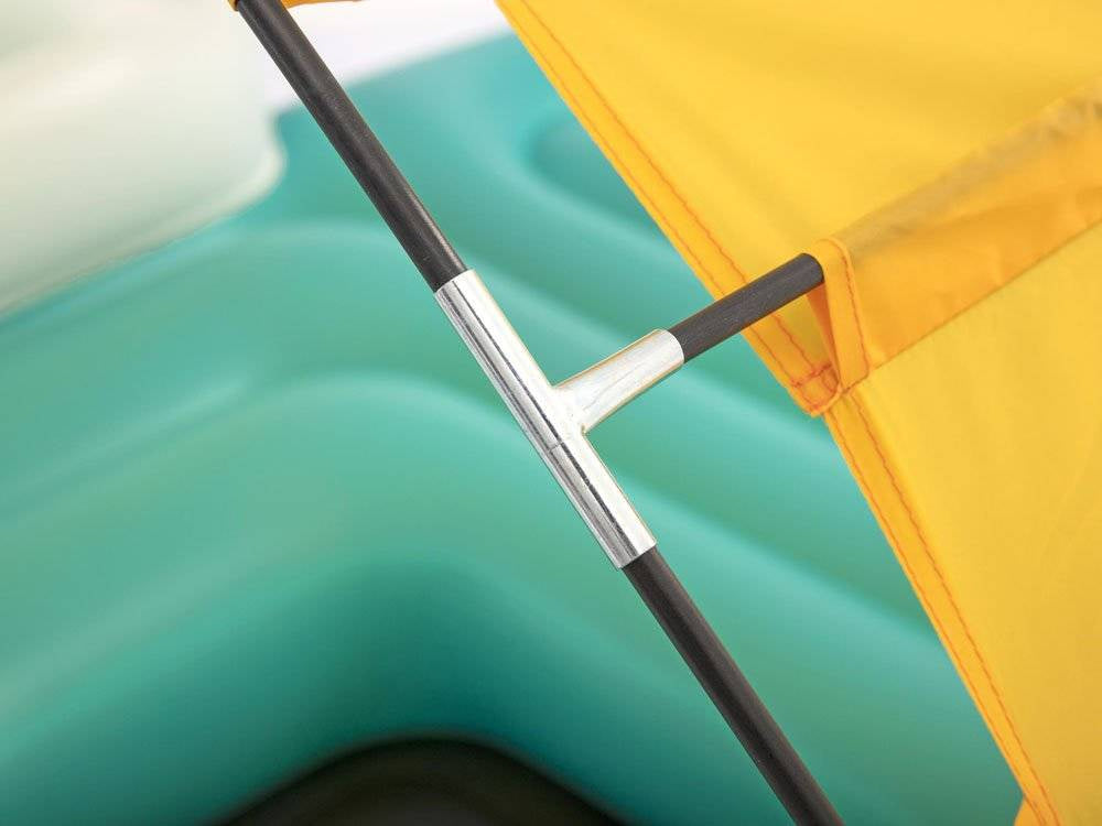 Čiužinyje esanti sistema užtikrina tinkamą jo elastingumą. Geltoną stogą, kuris saugo nuo saulės spindulių, galima lengvai nuimti, todėl čiužinys puikiai tinka ir saulės vonioms. Pripučiami nugaros atlošai užtikrins patogumą, o gėrimų laikikliai palengvins greitą prieigą prie mėgstamų gėrimų. Čiužinyje taip pat yra rankenos ir virvės, kurios palengvina čiužinio transportavimą. Čiužinio viduje taip pat yra nedidelis kojų vėsinimo baseinėlis. Į komplektą taip pat įeina remonto pleistras. Čiužinys pagamintas iš patvarios medžiagos.