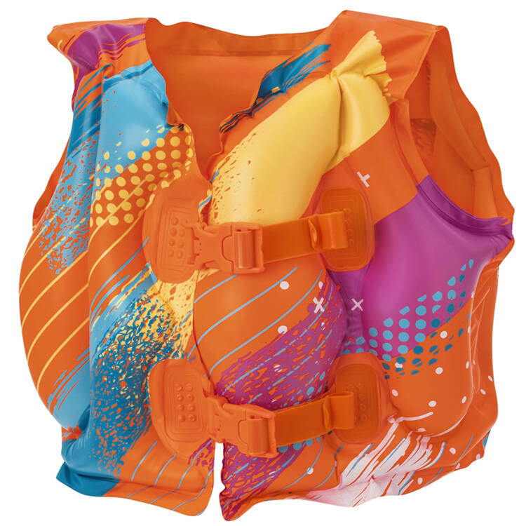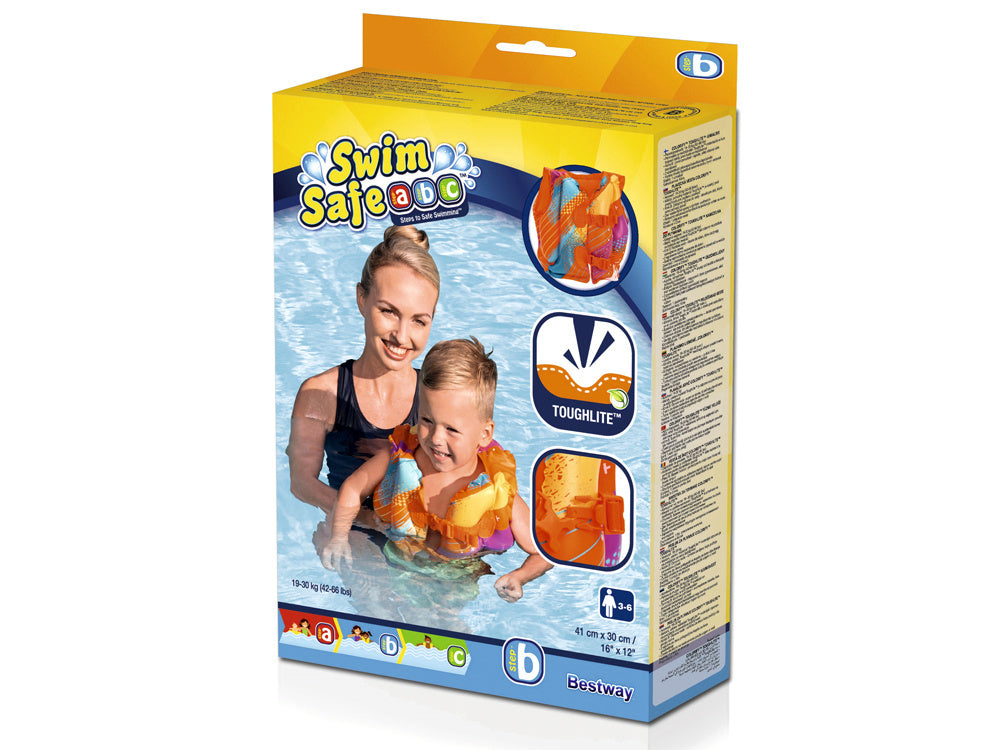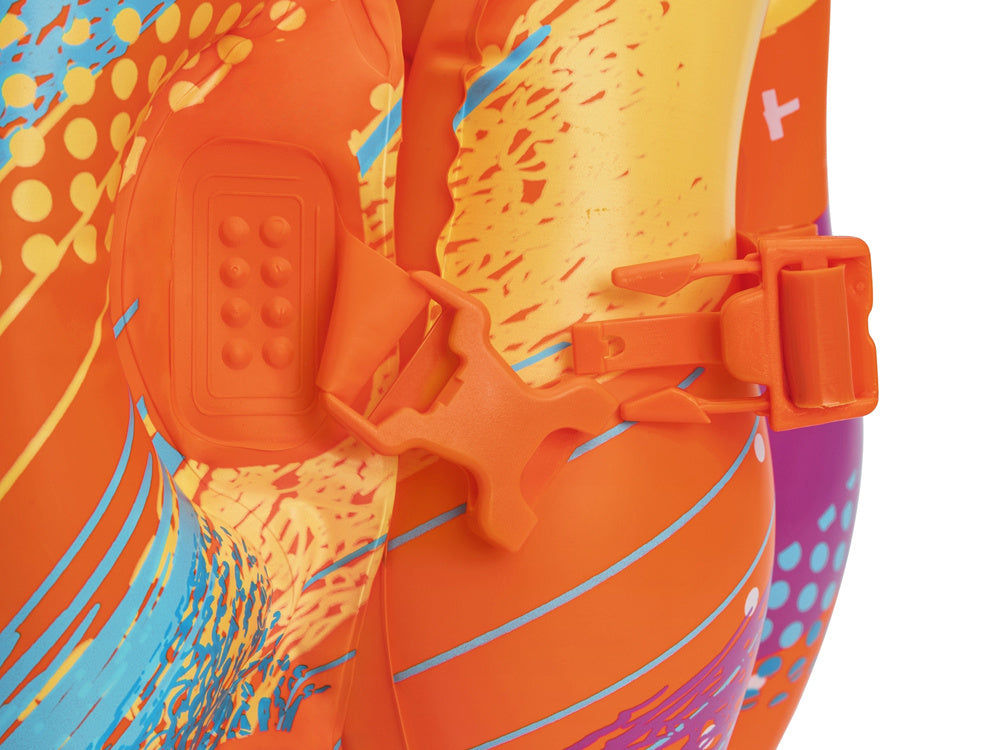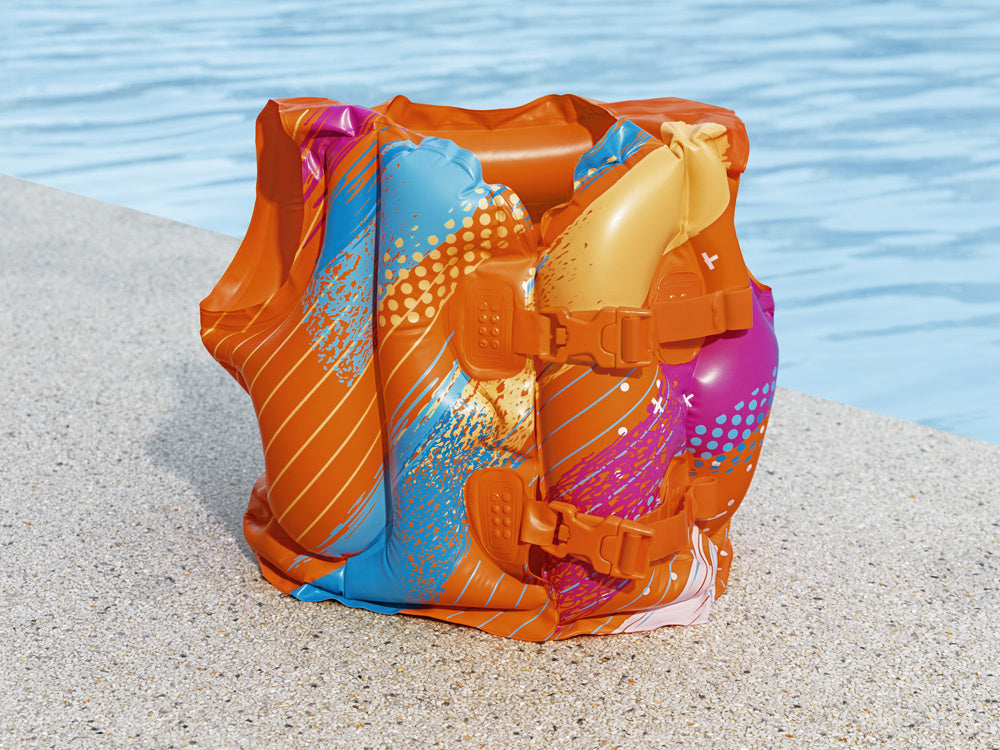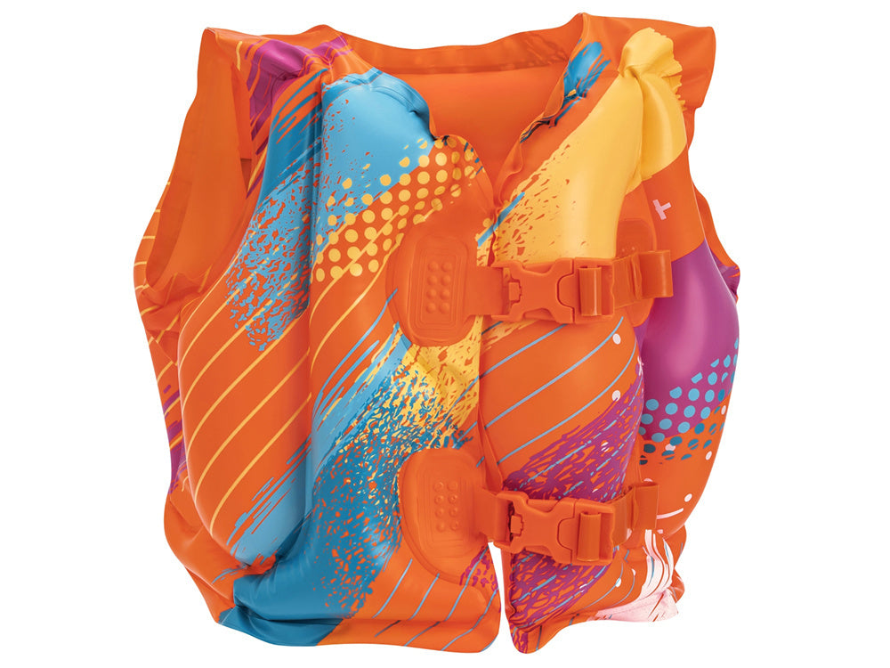 "Bestway" pripučiama spalvota liemenė, skirta mokytis plaukti vaikams nuo 3 iki 6 metų. Liemenė puikiai tinka pirmiesiems nuotykiams mokantis plaukti. Minkšta ir patogi, atspari pradūrimui "Tought Lite™" medžiaga ir dvi nepriklausomos oro kameros išlaiko vaiką plūduriuojantį, o reguliuojamos sagtys neleidžia vaikui išslysti iš liemenės.