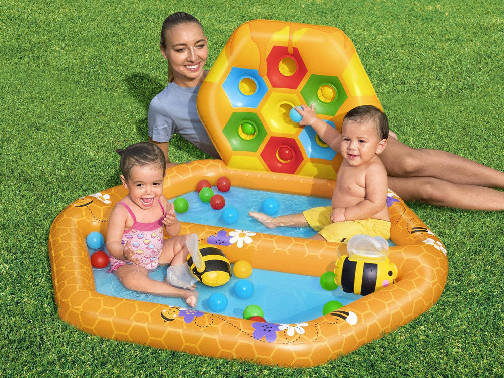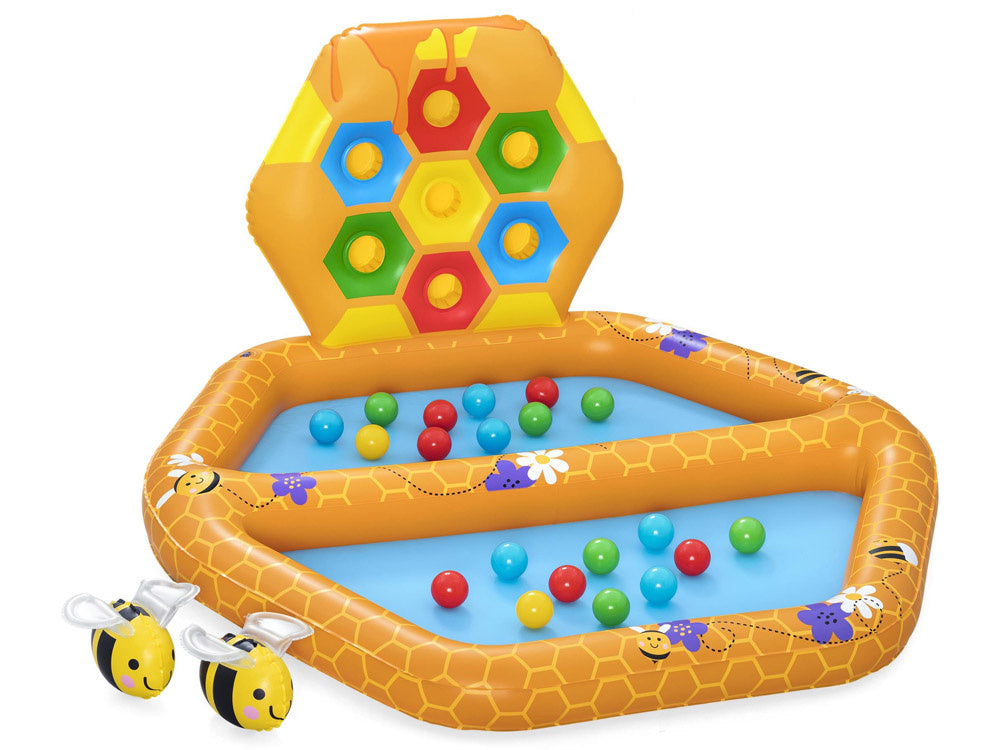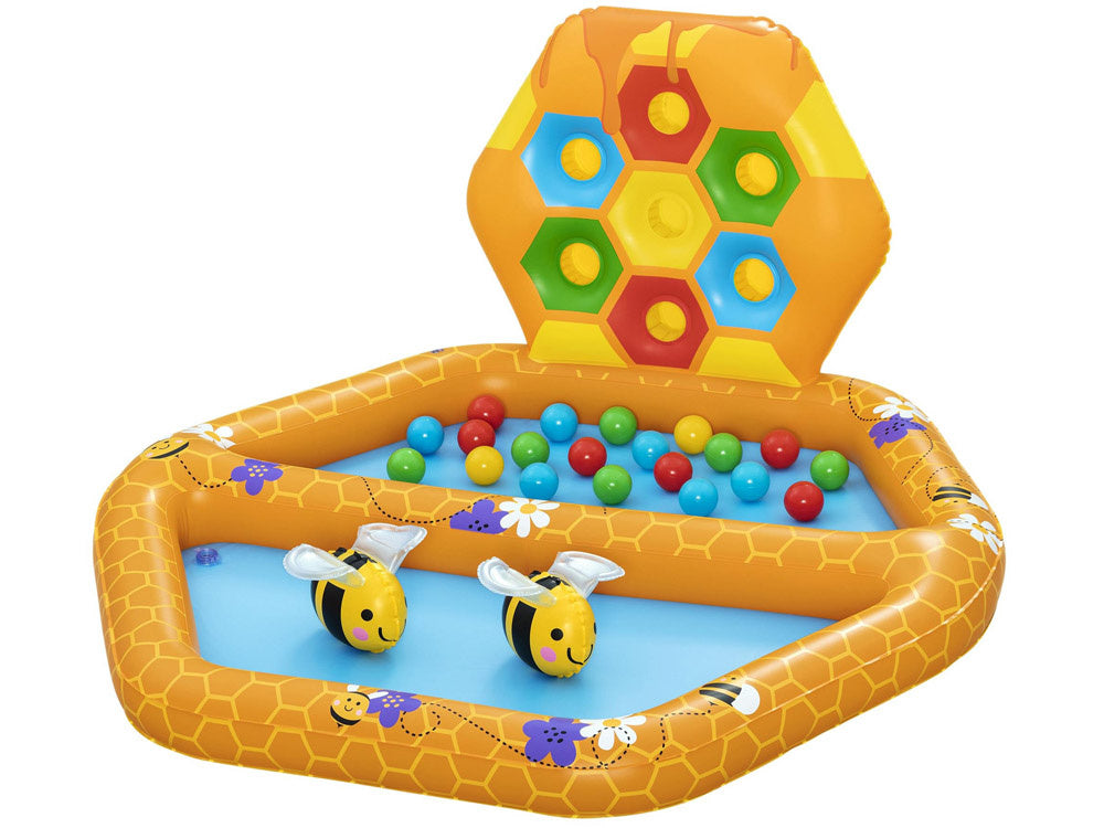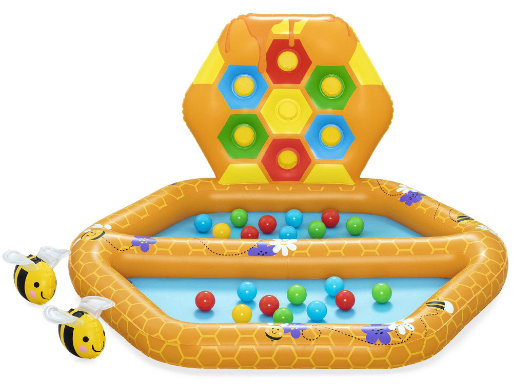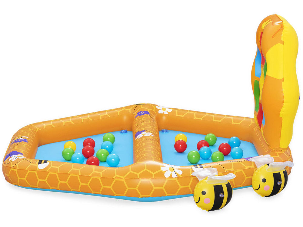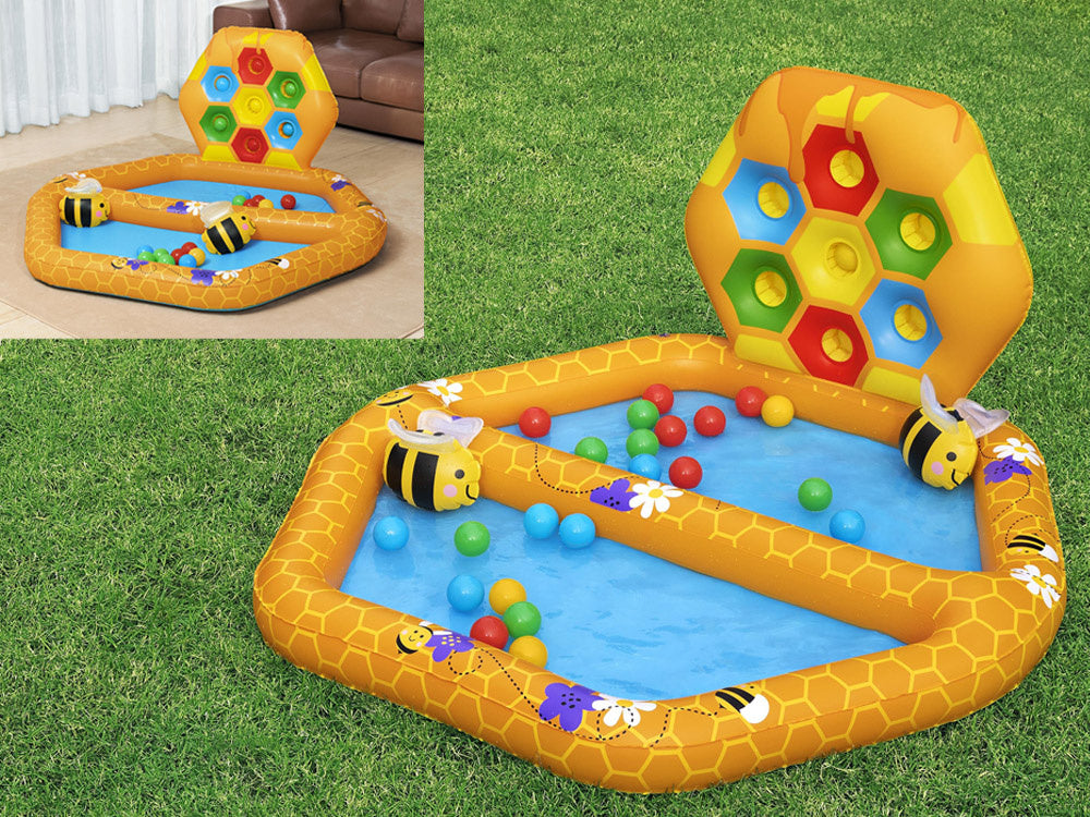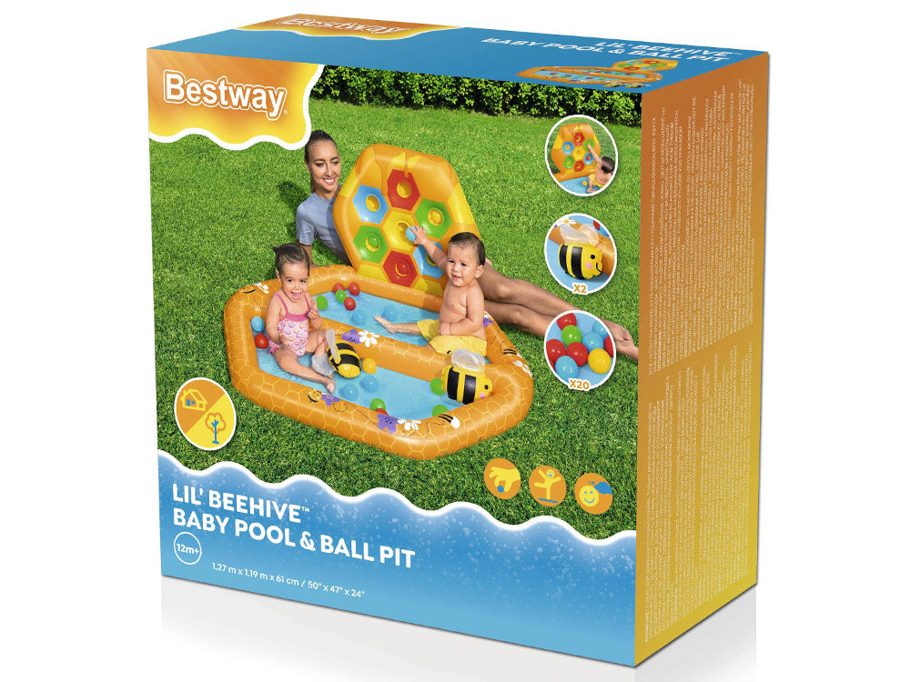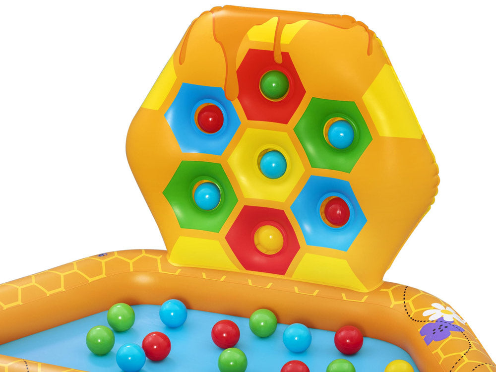 Puikus pasirinkimas vaikams, suteikiantis daug džiaugsmo ir visapusišką vystymąsi žaidimų metu. Šis daugiafunkcinis gaminys buvo sukurtas atsižvelgiant į vaikus, kad jiems būtų saugi ir stimuliuojanti erdvė žaisti lauke ir viduje. Jame yra pakankamai vietos vaikui, tačiau jis išlieka kompaktiškas, todėl baseinas gali tilpti net mažesniuose kambariuose ar soduose. Dizainas yra bičių korio rašto, todėl jis ne tik atrodo estetiškai ir traukia vaikų dėmesį, bet ir yra interaktyvus - sienelėje yra skylės, į kurias vaikas gali mėtyti kamuoliukus.