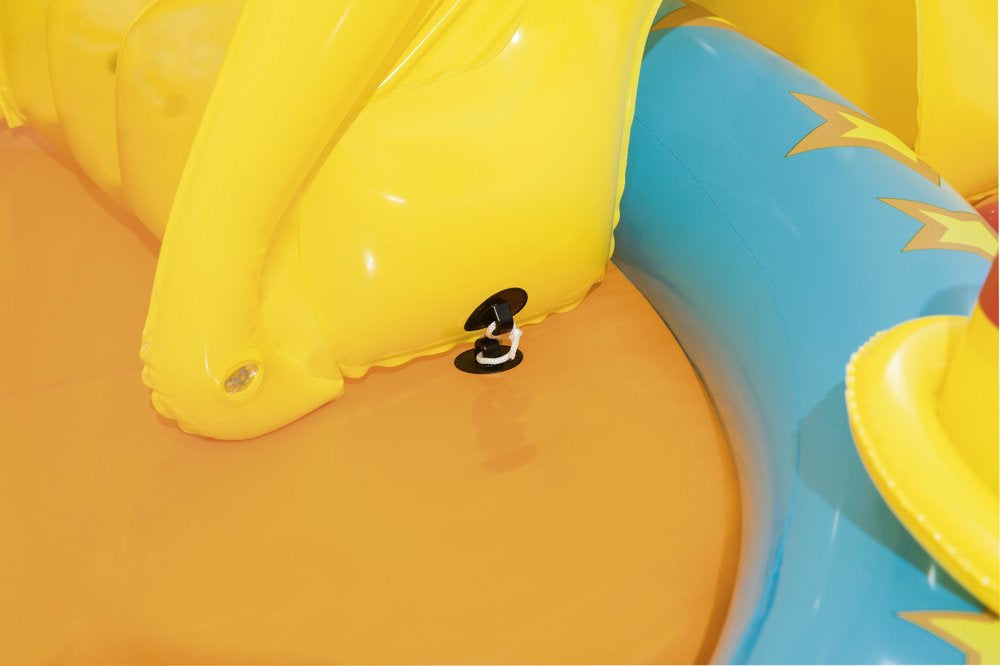 Pripučiama žaidimų aikštelė kiemą pavers tikru pramogų centru vaikui. Baseinas su pripučiamais atrakcionais, tokiais kaip pripučiamas nusileidimo kalnelis, vandens fontanas, boulingas, tikrai pradžiugins mažylį ir taps jo mėgstamiausia žaidimų vieta. Baseinas pagamintas iš minkštos, bet patvarios medžiagos ir yra maksimaliai saugus patiems mažiausiems vaikams. Žaidimų aikštele vienu metu gali naudotis keli vaikai, dėl daugybės atrakcionų kiekvienas iš jų ras kažką sau.