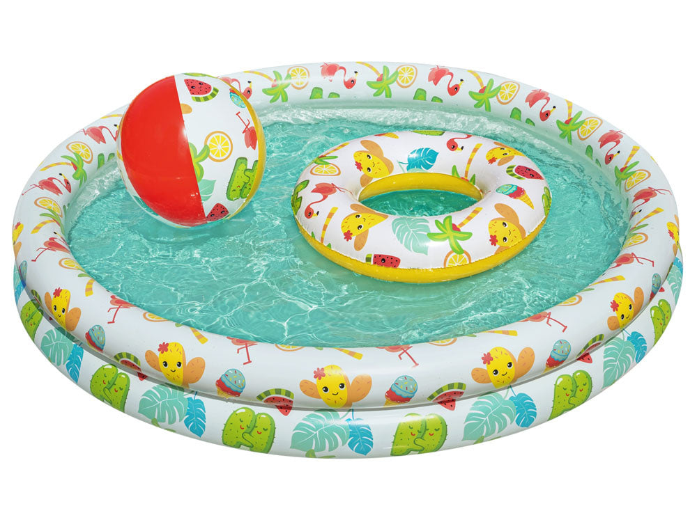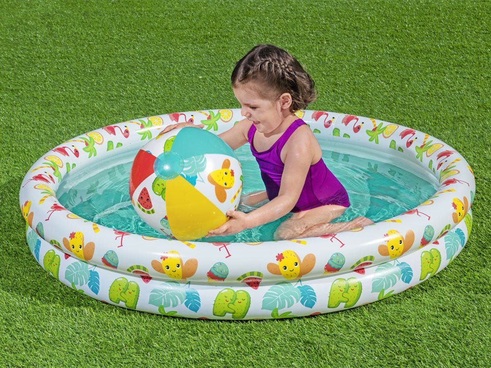 Nuostabus Bestway rinkinys sudomins pačius mažiausius. Apvalus pripučiamas baseinas lengvai talpina 2 vaikus. Gražios, jūrinės spalvos užtikrins daugybę pramogų patiems mažiausiems vaikams. Baseinas turi 2 atskiras žiedo formos oro kameras, papildomai apsaugotas nuo išsipūtimo.