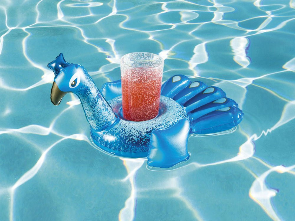 Plūduriuojantis mėlynas povas suteiks pilną prieigą prie šalto gėrimo poilsio metu. Plūduriuojančio povo dėka jums nereikės išeiti iš baseino ar sūkurinės vonios, kad galėtumėte mėgautis mėgstamu gėrimu.