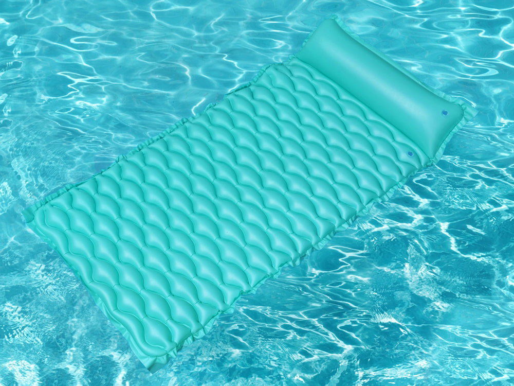 Pripučiamas turkio spalvos čiužinys, kurį galima lengvai suvynioti - įdomus pasiūlymas artėjančiam vasaros sezonui. Čiužinį galima naudoti ilsintis prie vandens arba kaip paplūdimio kilimėlį. Didelis jo privalumas - galimybė patogiai susukti jį į ritinėlį, kuris transportuojant neužima daug vietos. Pripučiamas čiužinys su atlošu turi 2 oro kameras ir įdomią tekstūrą, didelis dygsniuotas paviršius puikiai tiks karštomis dienomis ir užtikrins komfortą naudojantis.