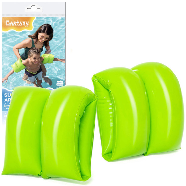 „Bestway" pripučiamos plaukimo rankovės yra privalomas kiekvieno vaiko reikmuo žaidžiant baseine, jūroje ar ežere. Ryškios spalvos drugelio formos rankovės buvo labai gerai suformuotos, todėl nevaržo judėjimo laisvės tiek plaukiojant, tiek žaidžiant vandenyje. Jūsų vaikas žaisdamas ar mokydamasis plaukti vandenyje galės jaustis saugus.