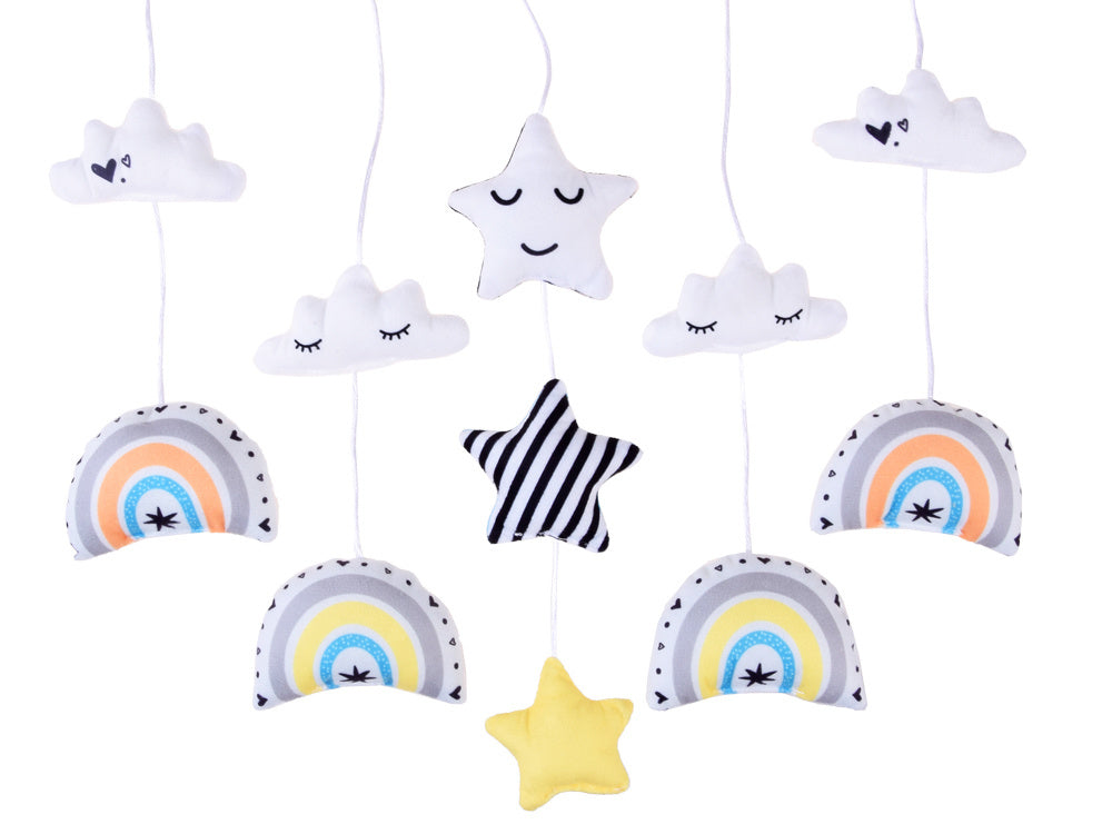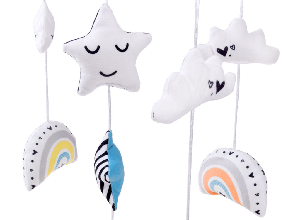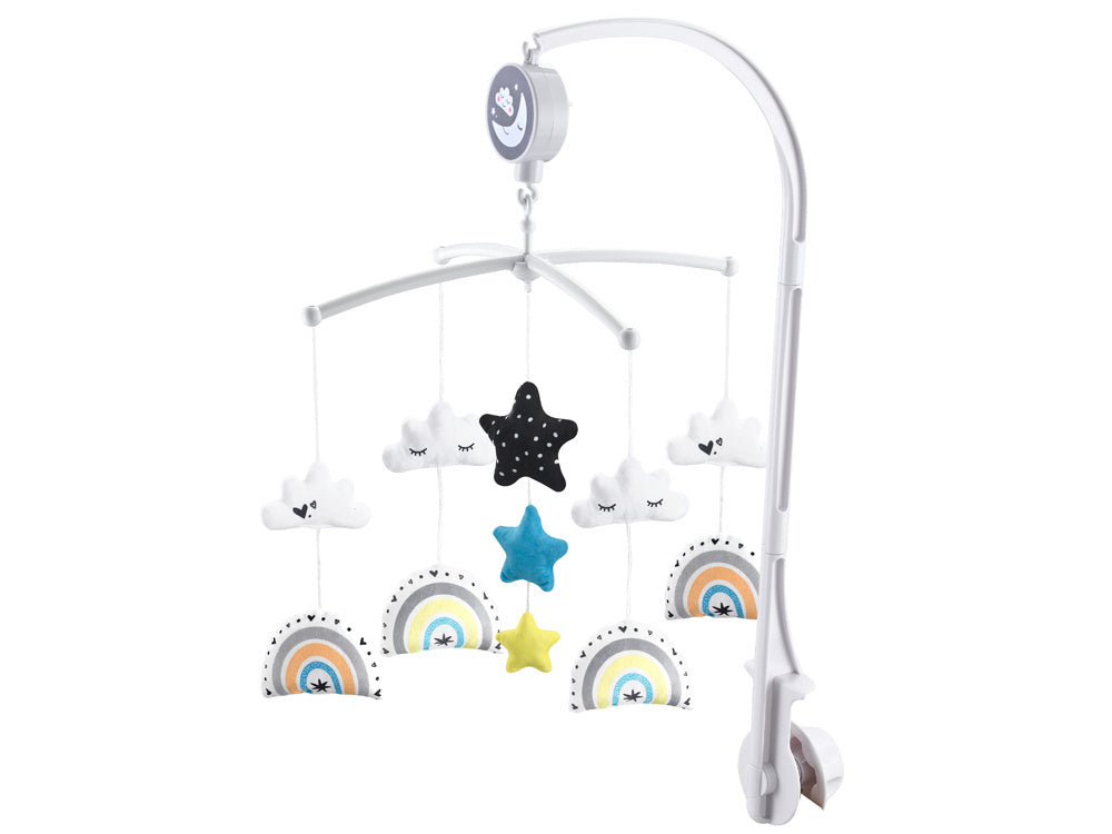 Prisukama vaikiškos lovytės karuselė su garso efektais, žvaigždės