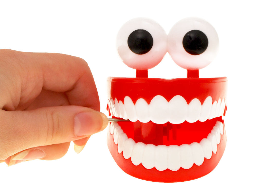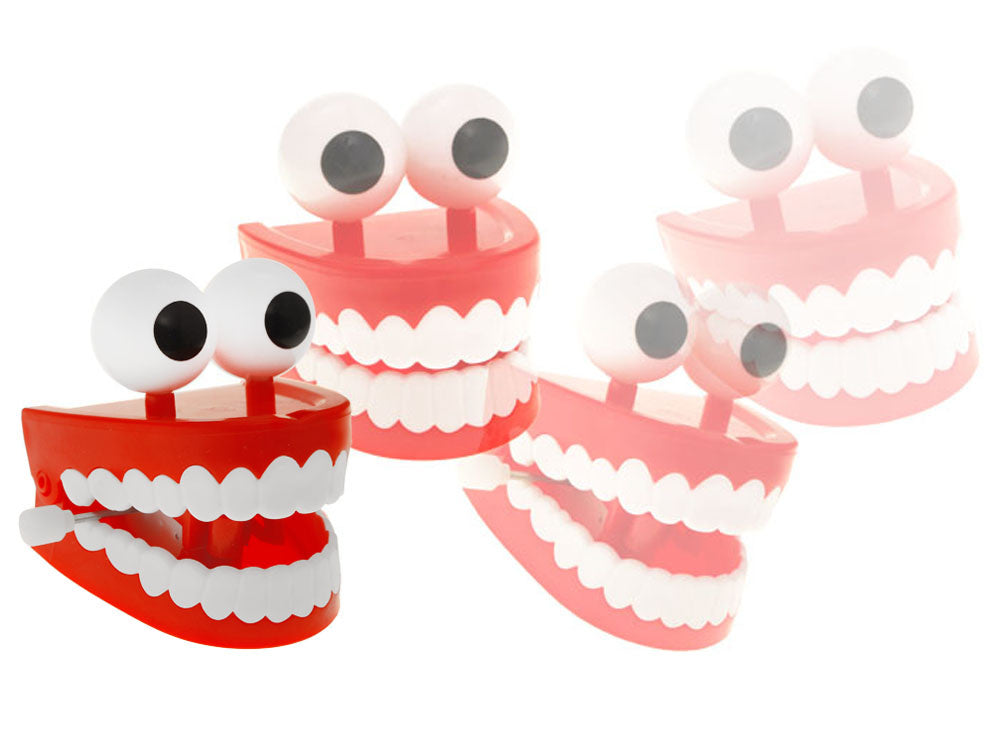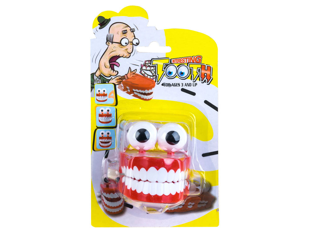 Linksmas žaislas - prisukamas žaislinis žandikaulis - tai pasiūlymas mažiems ir dideliems vaikams. Prisukami dantys su didžiulėmis akimis yra linksmas žaislas, kuris pralinksmins kiekvieną. Žaisliniu žandikauliu galite išgąsdinti draugą iš mokyklos arba iškrėsti pokštą kolegoms darbe, biure. Tai puiki idėja linksmybėms, kurioms neužtenka, tik puikaus humoro jausmo. Žaislas supakuotas permatomoje pakuotėje, todėl puikiai tinka dovanai.