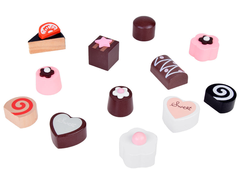 - 12 elementų: įvairūs mediniai sausainiai ir saldainiai