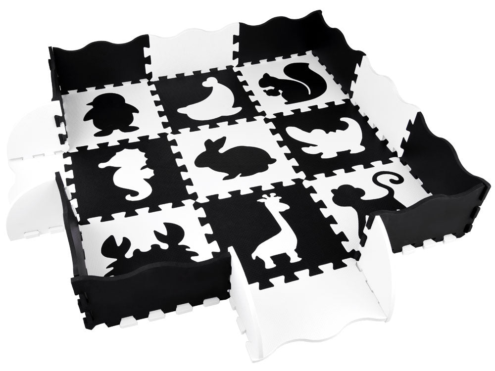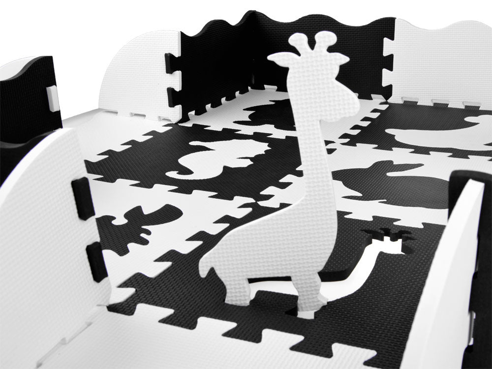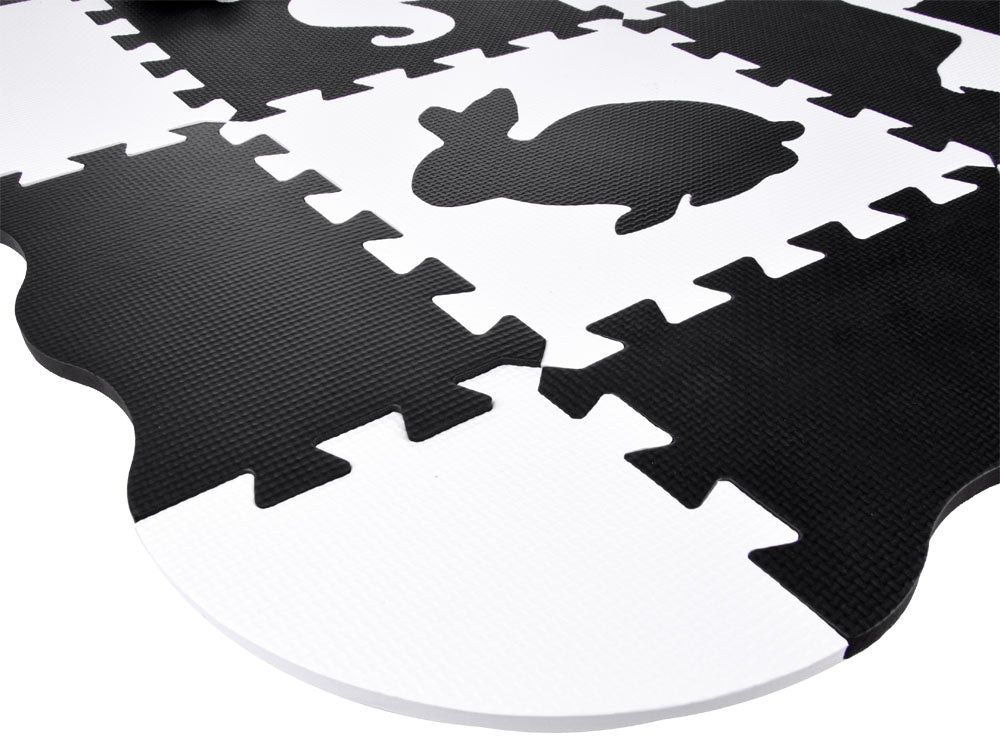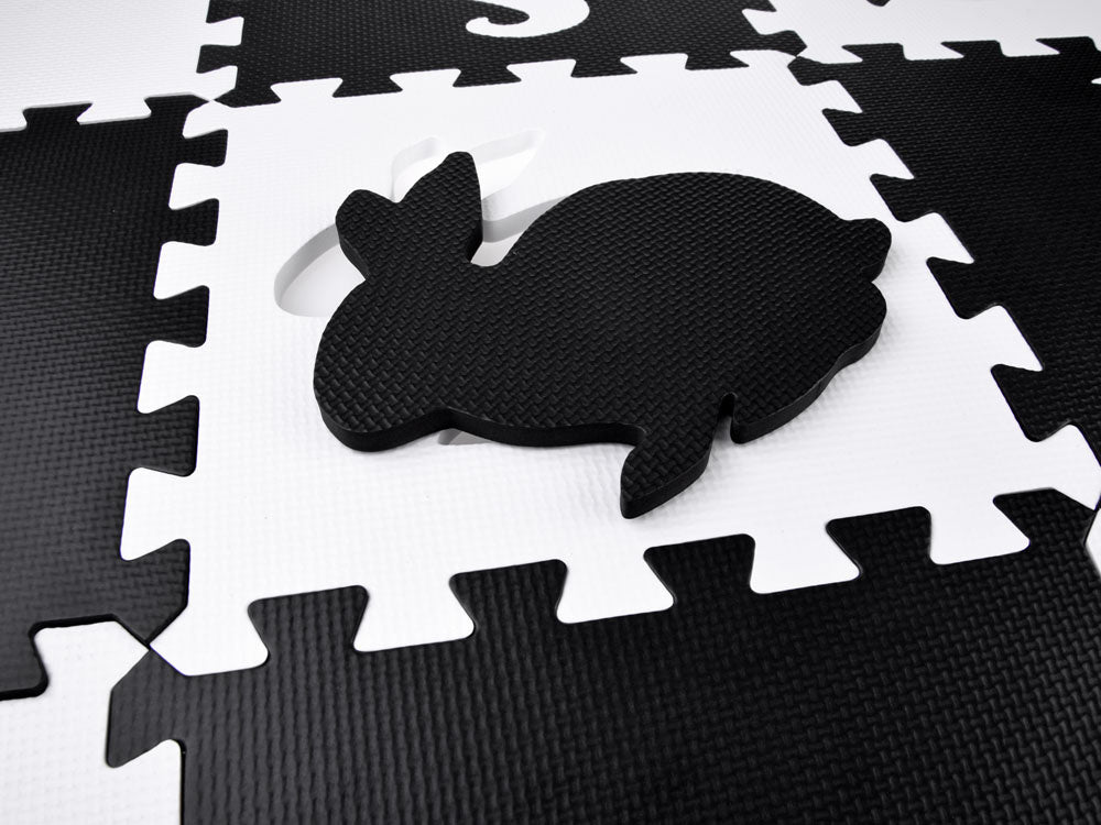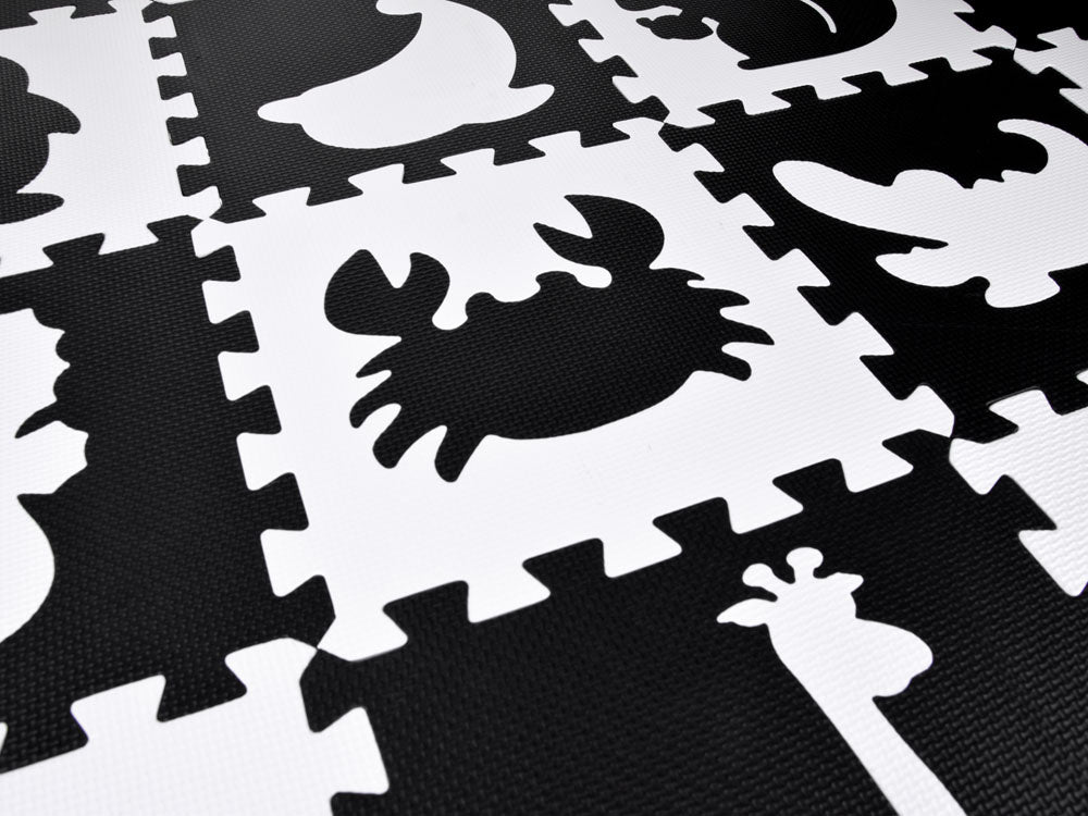 Putplasčio kilimėlis dėlionė gyvūnai, juodai balta