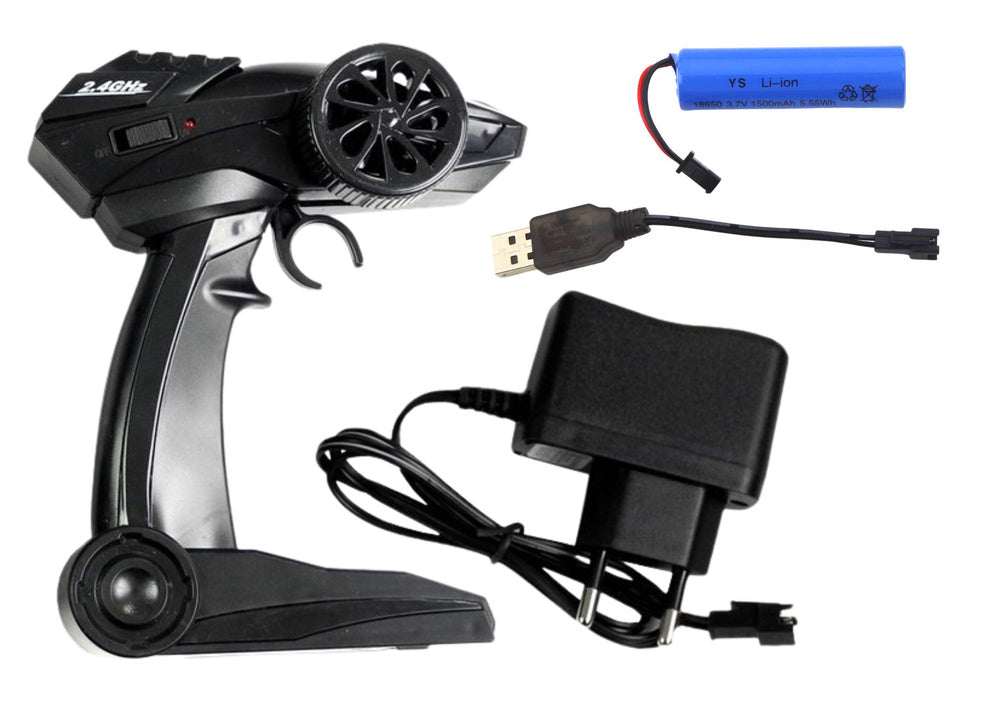 R / C nuotoliniu būdu valdomas juodos spalvos akumuliatorinis automobilis, tai transporto priemonė, garantuojanti vairuotojui puikias pramogas! Jis turi daug funkcijų, kurių nėra kituose vairuojamų transporto priemonių modeliuose, pvz., 4x4, amortizatoriai ir „Twist“ funkcija.