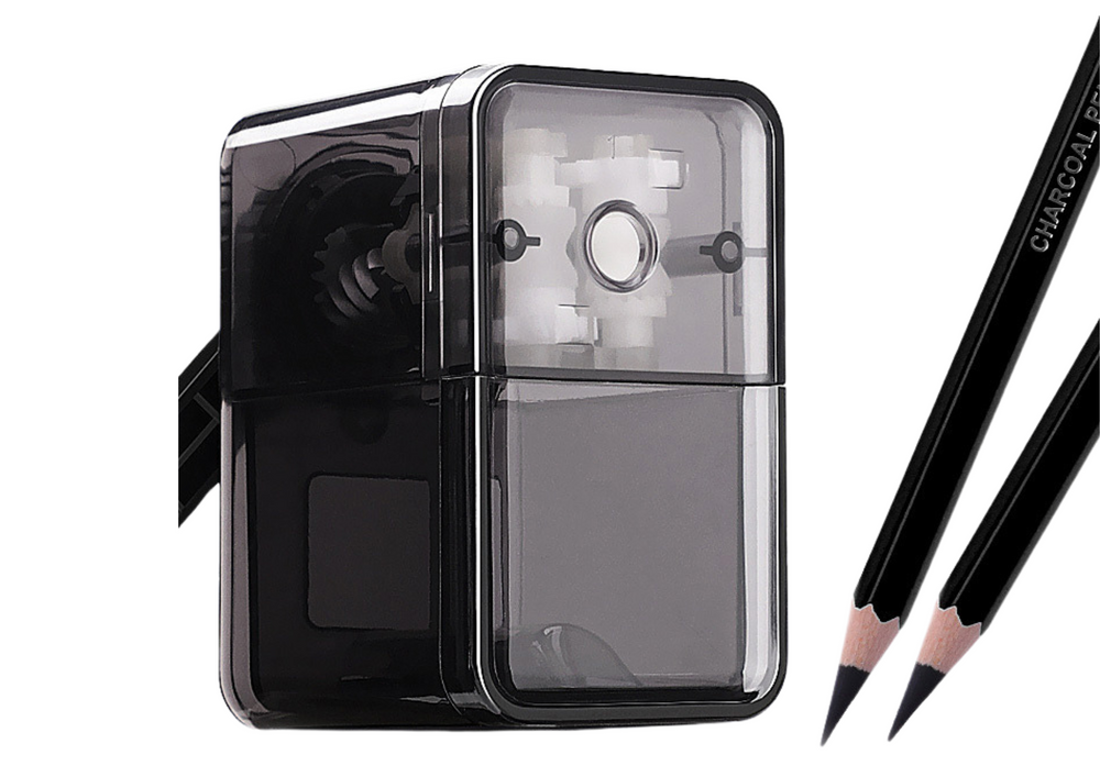 Rankinis pieštukų galąstuvas su talpykla, juodas
