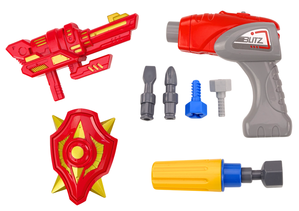 Robotas su gręžtuvu, atsuktuvu ir garso ir šviesos efektais, šviesiai mėlynas