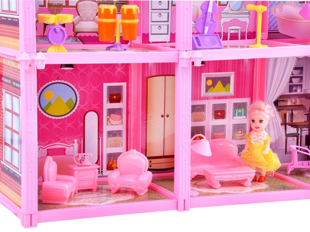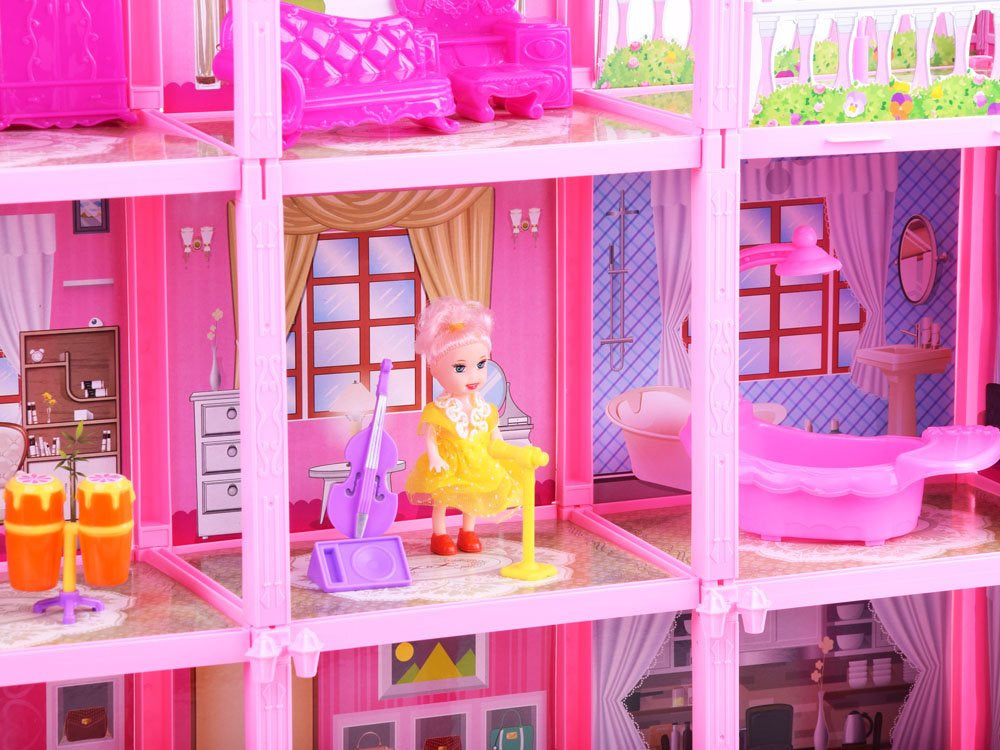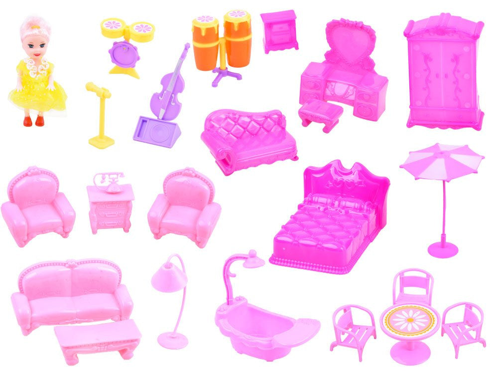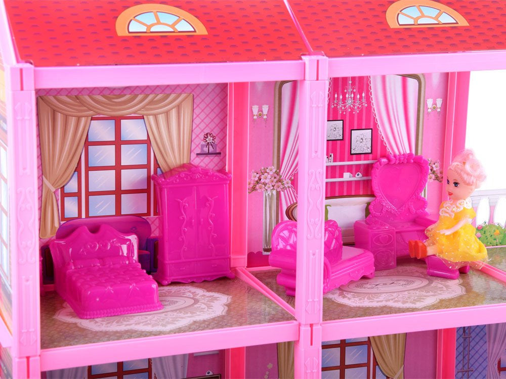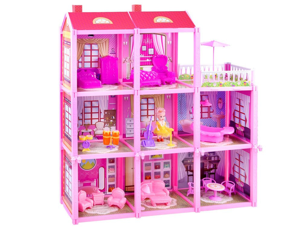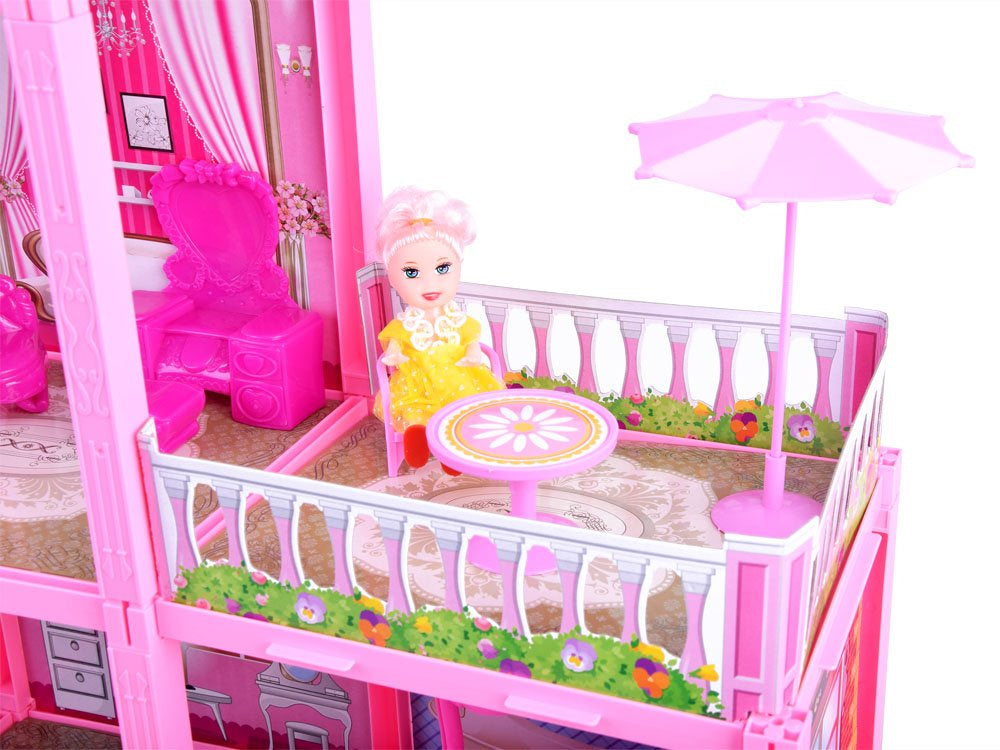 Pilnai įrengtas namas Jūsų vaiko lėlėms. Kruopščiai pagamintas ir įrengtas namas - kiekvieno vaiko svajonė! Lėlių name yra net aštuoni skirtingi kambariai ir balkonas. Baldai yra lengvai stumdomi ir kilnojami, todėl Jūsų vaikas galės įsirengti kambarius pagal savo asmeninius norus. Rinkinyje taip pat yra maža lėlytė, kuri yra pilnai pagaminta iš plastiko ir turi kilnojamas galūnes.