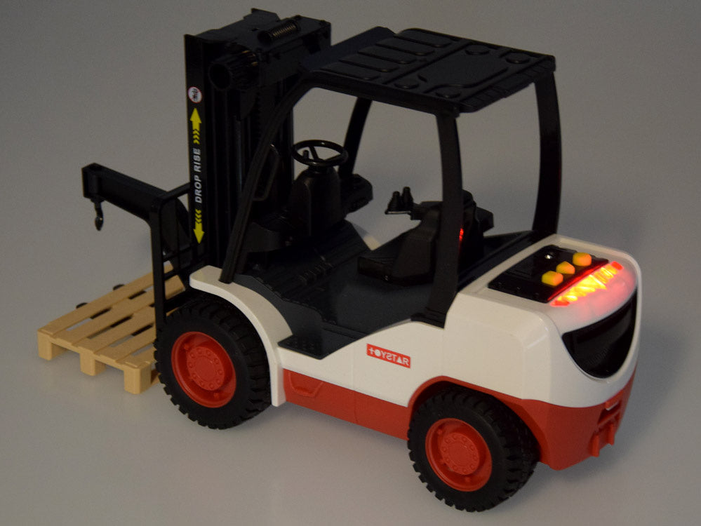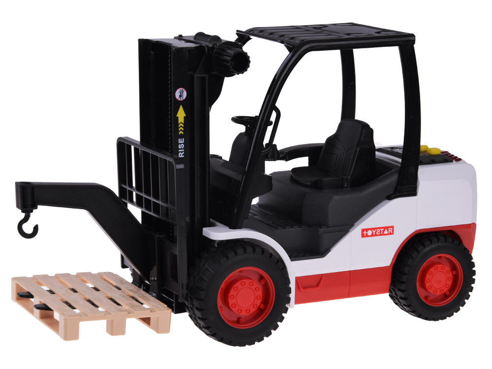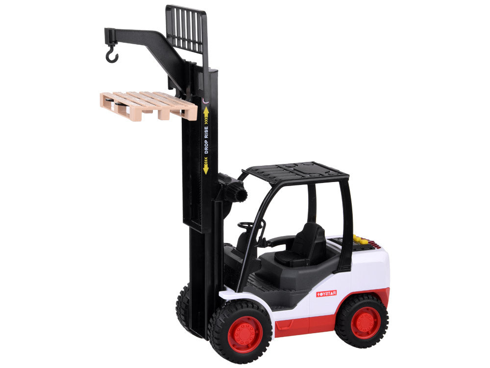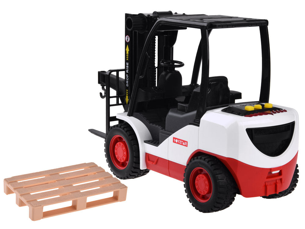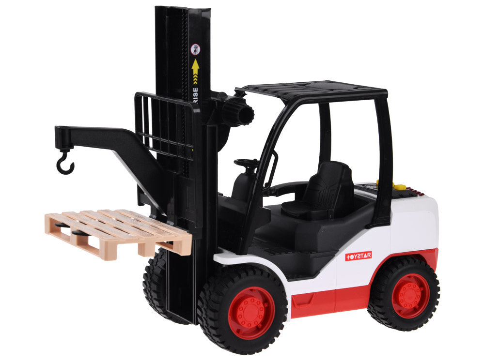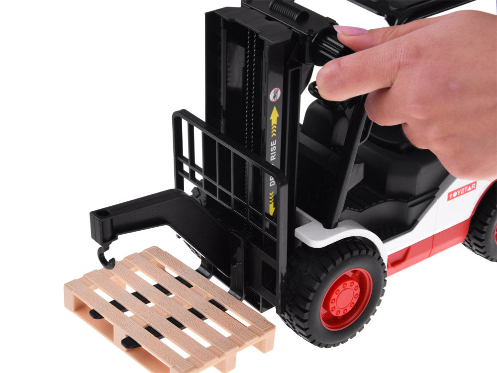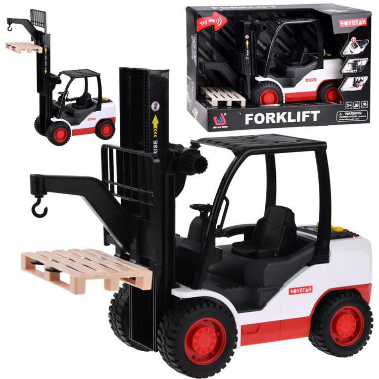 Krautuvas su padėklais - puikus pasirinkimas kiekvienam mažam automobilizmo ir statybų gerbėjui. Transporto priemonė buvo tiksliai atkurta, todėl ji atrodo labai tikroviškai. Papildomas privalumas - reguliuojamas keltuvas, kurį galima įjungti keltuvo viršuje esančia rankenėle. Transporto priemonė tikrai bus gražus kiekvieno šių transporto priemonių mėgėjo statybinių mašinų kolekcijos papildymas ir galės įveikti bet kokį krovinį. Viskas supakuota į estetišką dėžutę puikiai tinkančią dovanai.