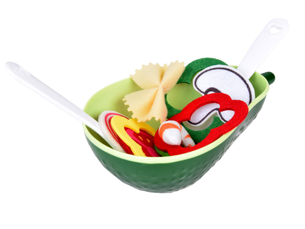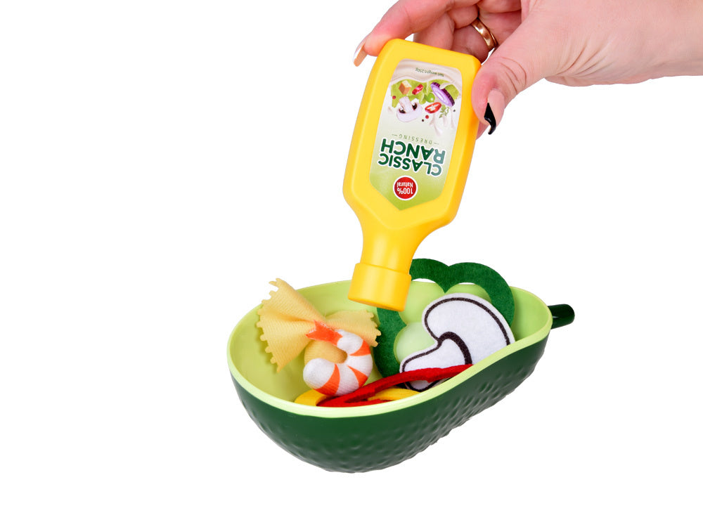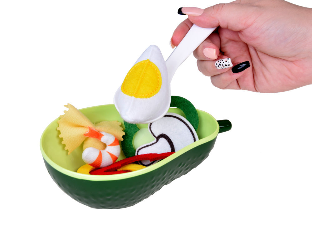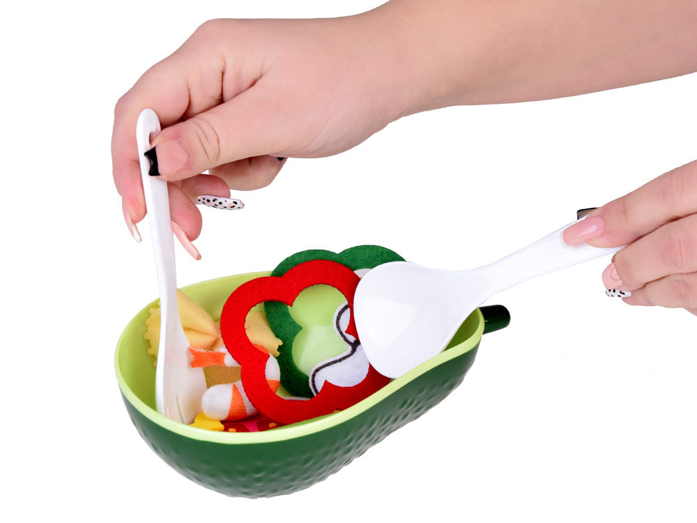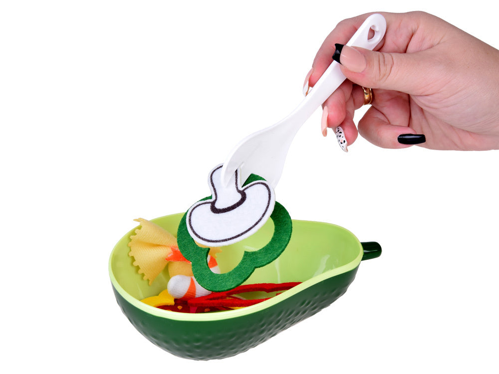 Spalvingas avokado formos dubuo su priedais - puikus rinkinys mažiesiems kulinarams! „Skanios salotos“ nėra tik žaislas - tai investicija į jūsų vaiko vystymąsi. Su šiuo rinkiniu vaikai gali lavinti savo kūrybiškumą, lavinti rankų darbo įgūdžius ir mėgautis žaidimu. Kas žino, gal jūsų namuose kaip tik auga būsimasis virėjas? Žaidimas gaminant maistą yra puikus būdas mėgdžioti suaugusiuosius, lavinti vaizduotę ir mokytis sveikų įpročių.