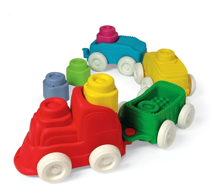 Minkštas traukinys su lokomotyvu ir vagonais, su kuriuo smagu žaisti ir rūšiuoti. Jūsų vaikas atras Clemmy audinio tekstūrą, formas ir minkštumą, mėgaudamasis sensorine patirtimi, kuri padės ugdyti jo lytėjimo pojūtį ir rankų miklumą. Vagonus galima lengvai atjungti ir sujungti tarpusavyje.