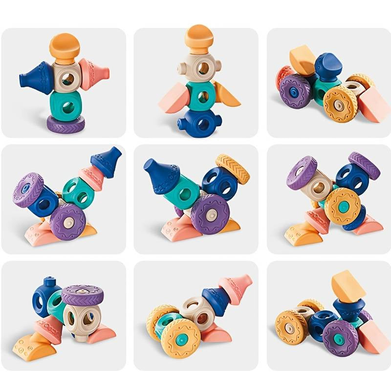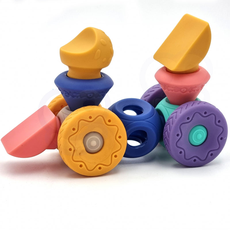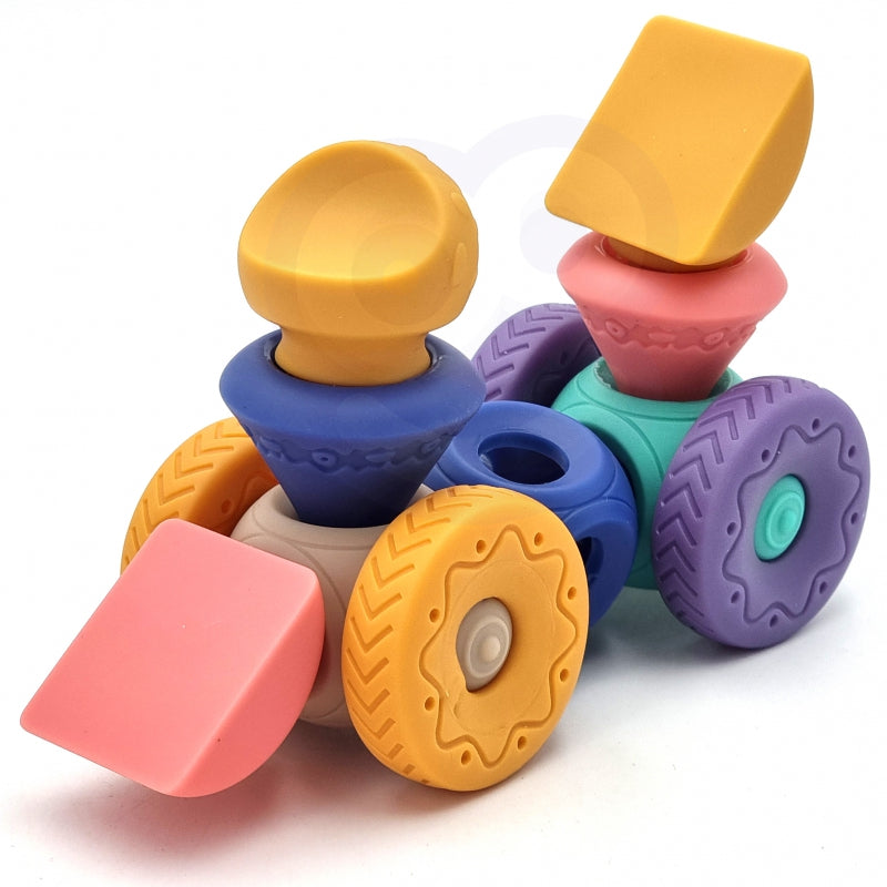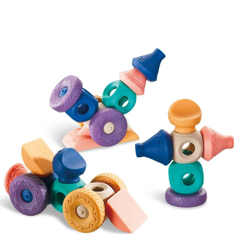 WOOPIE Sensorinės kaladelės sudomins kiekvieną vaiką. Dėl įdomių formų ir spalvų jos puikiai tinka vaiko regos ir klausos koordinacijai, motoriniams įgūdžiams ir lytėjimo pojūčiui lavinti. Kaladėles galima jungti tarpusavyje ir statyti įvairias konstrukcijas, pavyzdžiui, lenktyninį automobilį. Blokeliai yra minkšti ir malonūs liesti. Dėl savo struktūros jie puikiai tinka ir kaip kramtukai. Galima naudoti ir plauti vandenyje.