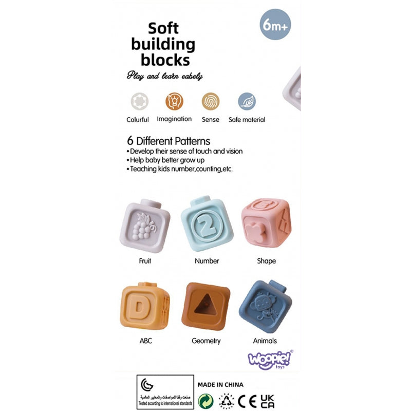 Šis kūrybiškas pastelinių spalvų skaičių kaladėlių rinkinys iš WOOPIE yra idealus pasirinkimas patiems mažiausiems vaikams, suteikiantis įvairių lavinamųjų ir sensorinių galimybių. Kiekviena iš šešių kaladėlių supažindina vaikus su skaičių pasauliu, kartu lavindamas įvairius pojūčius ir įgūdžius. Jutiminiai blokeliai pagaminti iš minkštos, kūdikiui nekenksmingos medžiagos, todėl jie gali būti kaip kramtukai, palengvinantys dygstant dantukams.