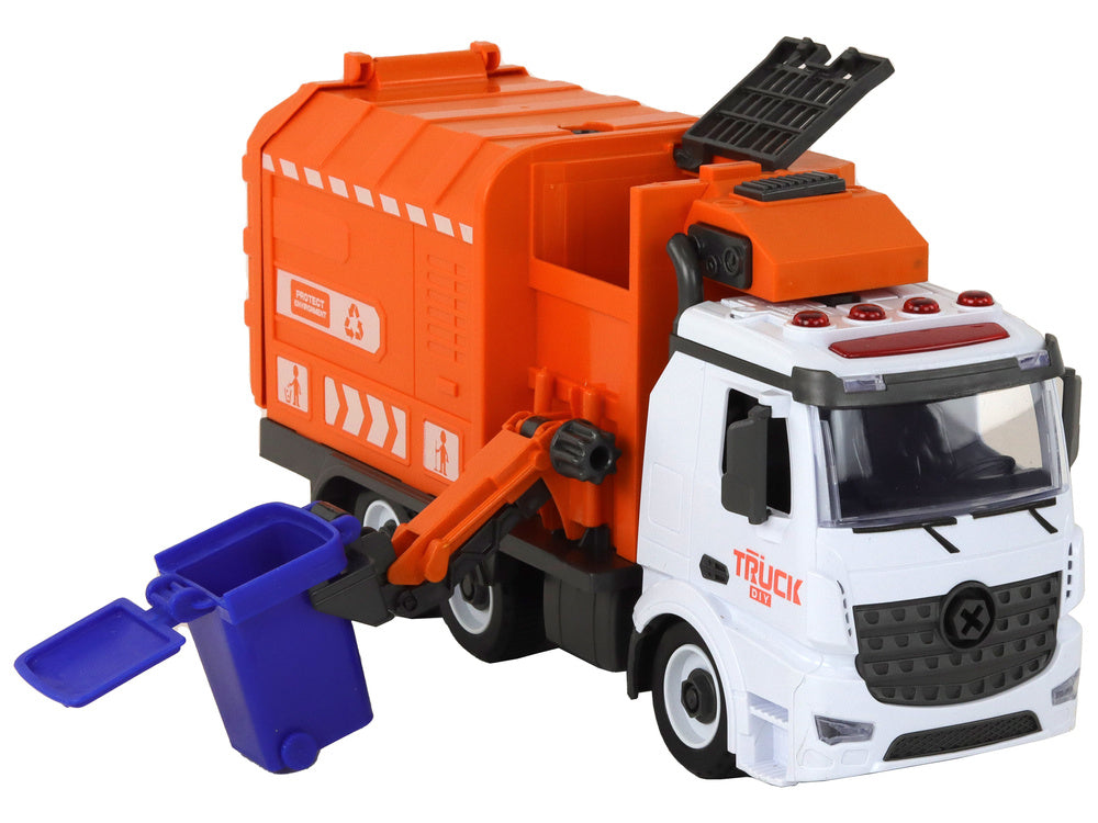 Šiukšliavežės transporto priemonė turi įspūdingą šviesos ir garso sistemą, kuri suteikia žaidimui tikroviškumo. Rinkinyje yra atsuktuvas su dviem antgaliais, kad būtų lengva prisukti ir atsukti varžtus. Su paprastomis instrukcijomis ir spalvingomis schemomis vaikas gali pats naudotis atsuktuvu ir kartu mokytis konstravimo pagrindų.