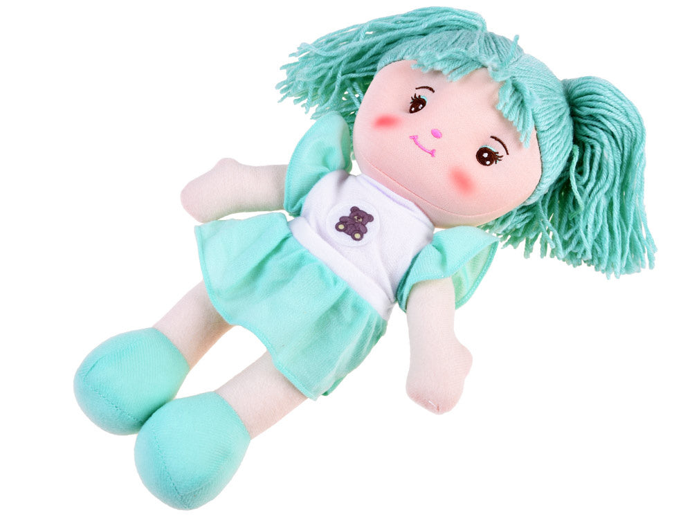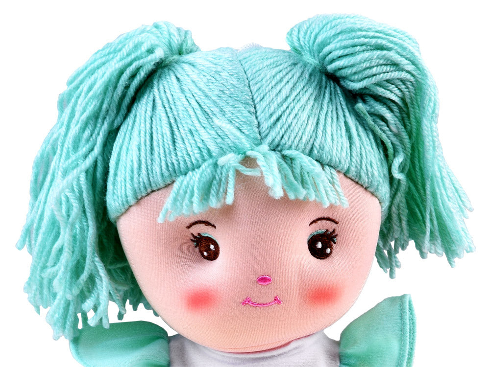 Skudurinė lėlė Zuzija su žalsvos spalvos suknele