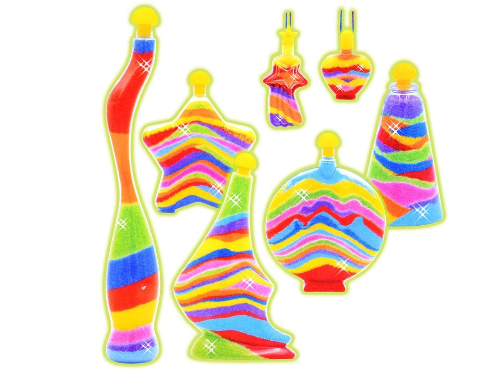 - 8 maišeliai spalvoto smėlio, kiekvienas maždaug po 100 g