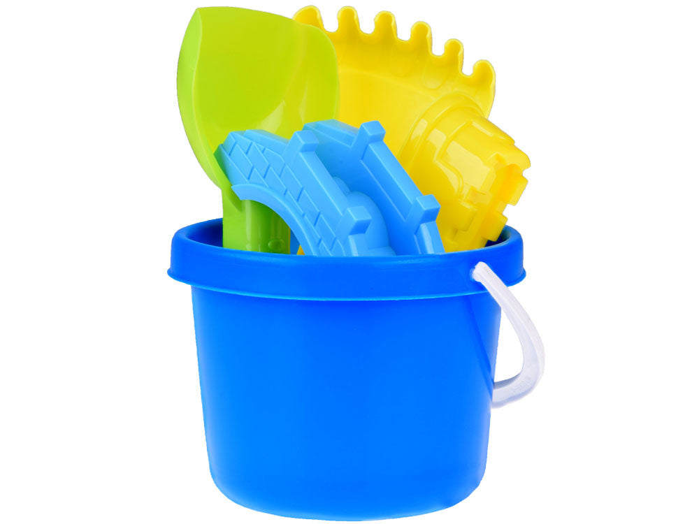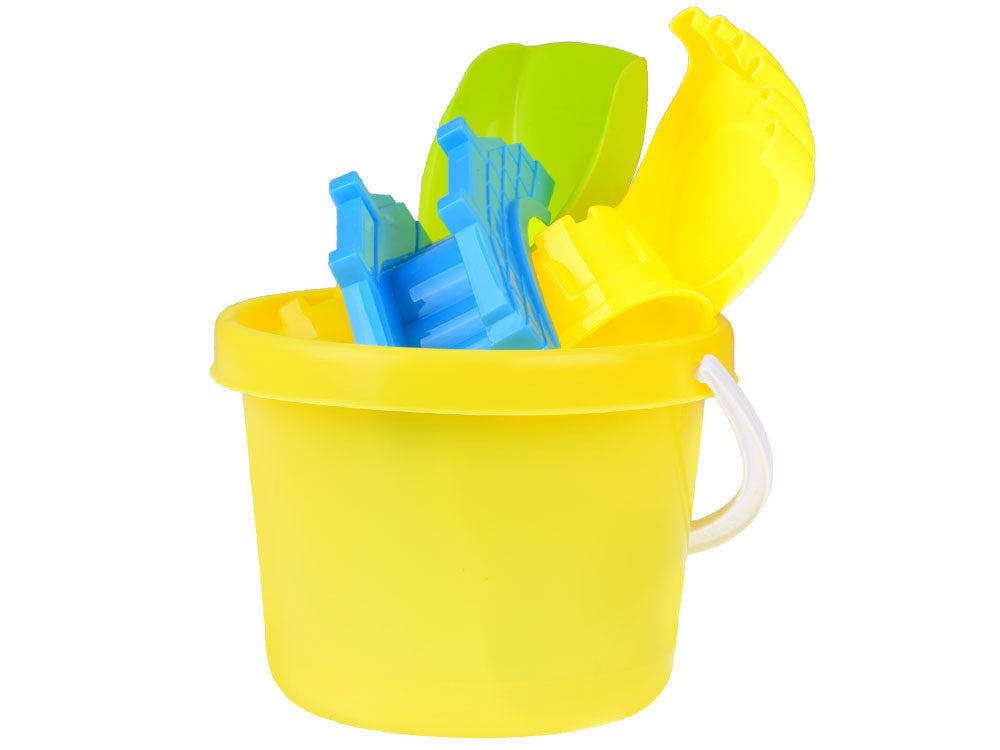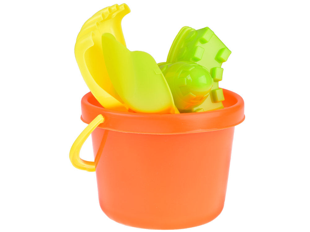 Plastikinis kibirėlis ir formelės - idealus žaislas vaikams paplūdimyje ir smėlio dėžėje! Puikus rinkinys smėlio pilims, gynybiniams bokštams statyti ir visoms kitoms vaiko idėjoms įgyvendinti.