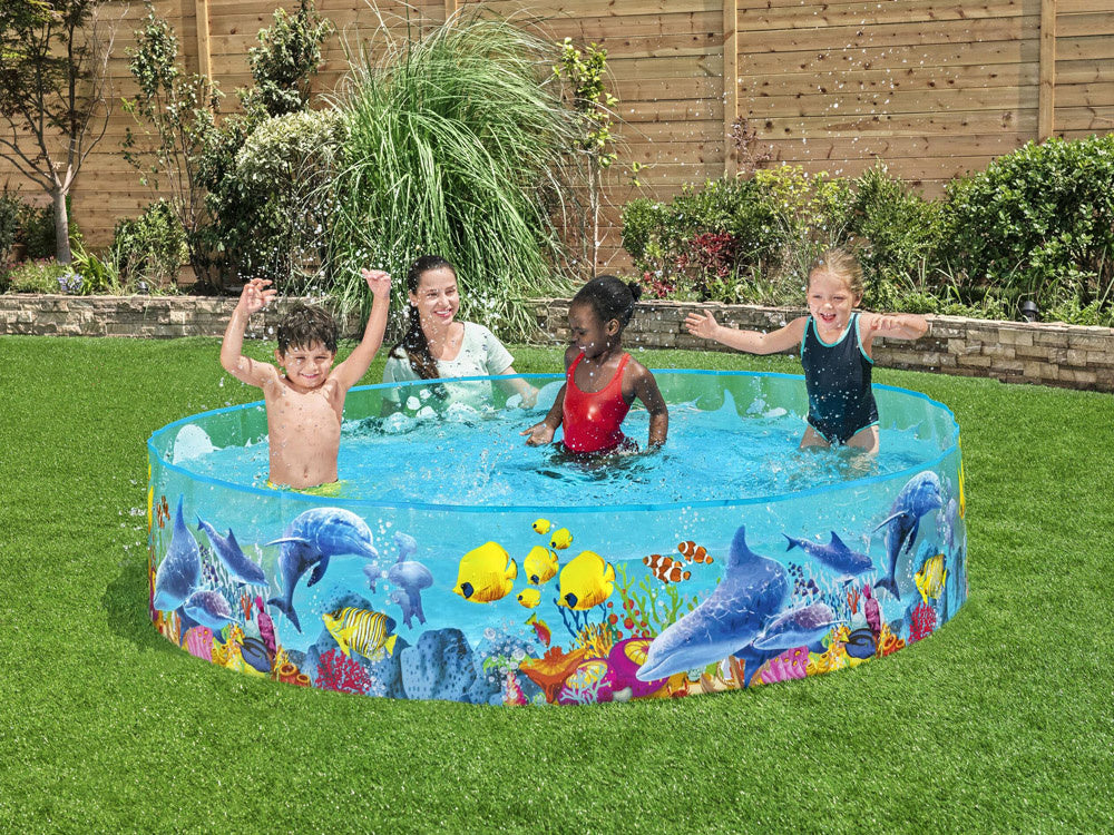 Šis sodo baseinas greitai tampa populiaria vieta vasaros poilsiui ir pagrindine vaikų žaidimų vieta. Įdomi grafika tikrai patrauks bet kurio vaiko dėmesį. Jis buvo sukurtas siekiant paskatinti vaikus kartu judėti ir žaisti per šventes. Baseiną pastatyti labai paprasta – surinkti nereikės jokių papildomų įrankių, prisipildžius vandens baseinas išsiplės.