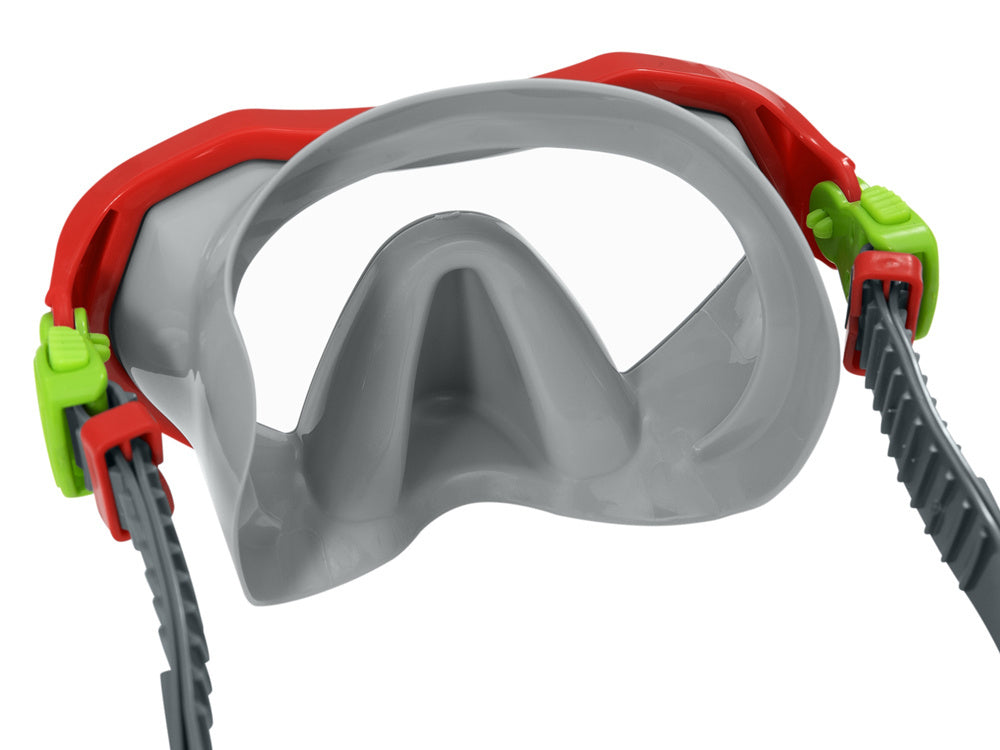 Spalvinga "Bestway® Crusader" plaukimo kaukė tikrai puikiai tiks pirmosioms plaukimo pamokoms. Ji buvo sukurta siekiant užtikrinti mažiausių vaikų patogumą ir saugumą atliekant jūros atradimus. Kaukė pagaminta iš polikarbonato, dėl to yra atspari smūgiams ir turi apsaugą nuo UV spindulių.