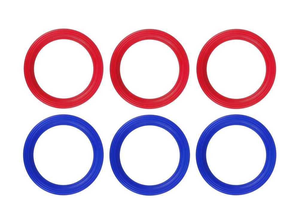 - 6 dviejų spalvų lankeliai (mėlyna ir raudona)
