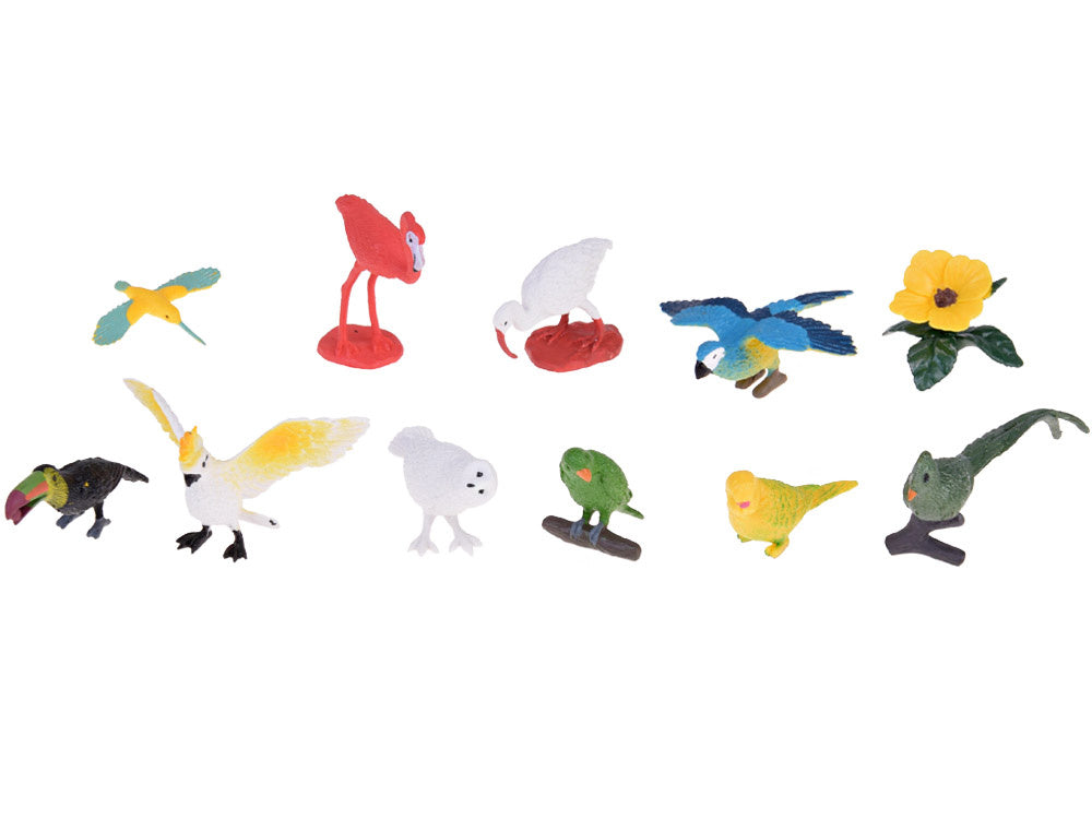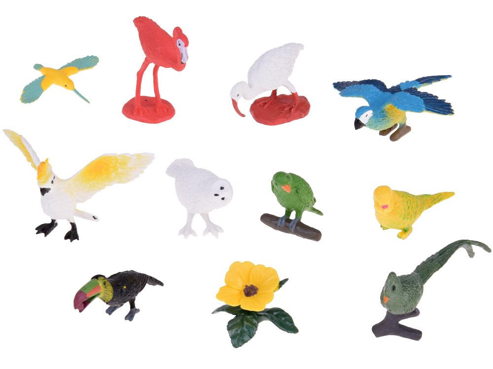 Spalvotų paukščių figūrėlių rinkinys 10 vnt.