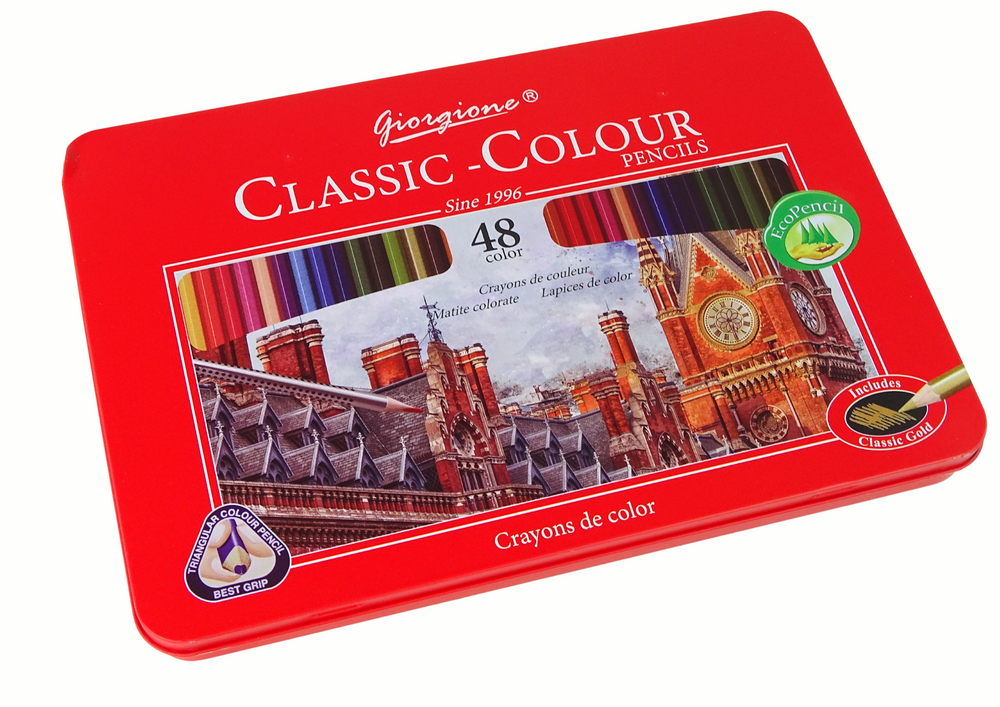 Spalvotų pieštukų rinkinys metaliniame dėkle 48 vnt.