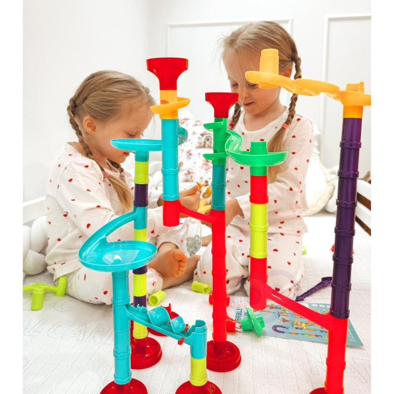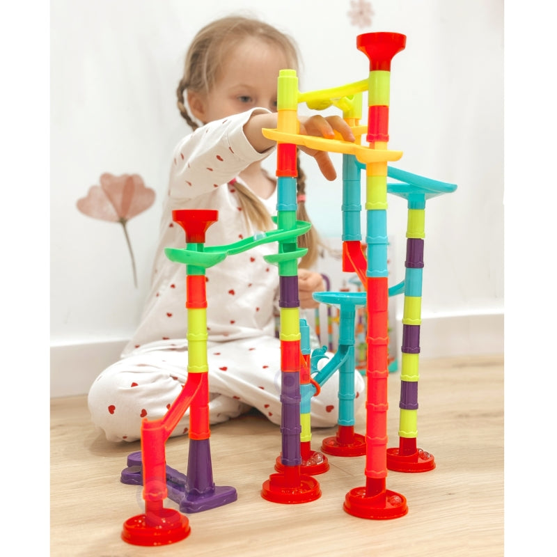 „CouloDrome“ iš WOOPIE yra spiralinis takelis, skirtas begaliniam linksmumui. Šį spalvingą rinkinį sudaro daugybė skirtingų spalvingų elementų, kuriuos vaikas gali lengvai sukrauti vienas ant kito ir laisvai sujungti į puošnius takelius. Numeskite kamuoliukus ir stebėkite, kaip jie rieda ir siūbuoja po vieną.