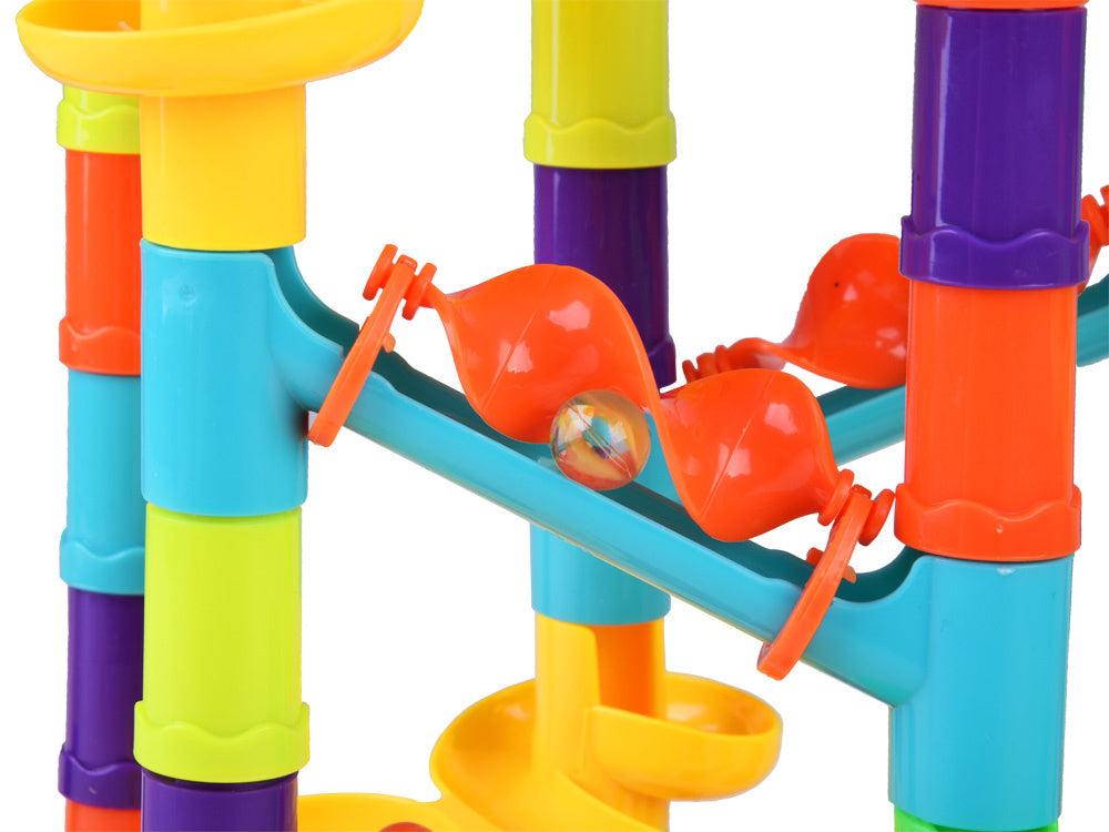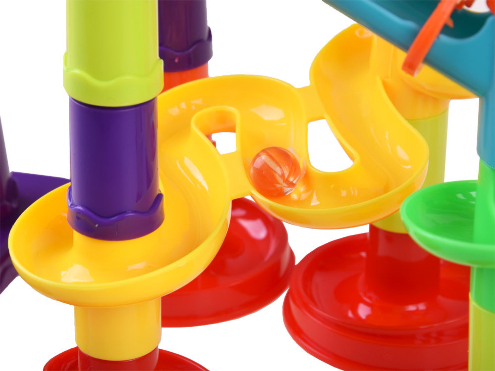 113 dalių spiralinis rutuliukų takas - tai rinkinys, kuris suteiks valandų valandas nesibaigiančių linksmybių. Trasą sudaro daug spalvotų elementų, įskaitant paleidimo įrenginius ir kamuoliukus, su kuriais vaikas gali sukurti unikalias ir nepakartojamas trasas. Vaikai gali atkartoti paveikslėlio instrukcijoje nupieštą modelį, kuriame pavaizduotas trasos pavyzdys arba eksperimentuoti ir kurti savo konstrukcijas. Žaislas skatina kūrybiškumą, erdvinį mąstymą ir lavina rankų darbo įgūdžius.