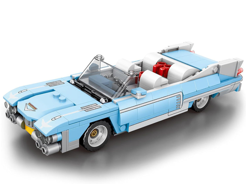 Šviesiai mėlynos spalvos kabrioletas yra puikus pasirinkimas klasikinio automobilio ir elegantiško dizaino, įkvėpto 1950-ųjų amerikietiškų automobilių aukso amžiaus, mėgėjams. Modelis atspindi senovinių prabangių automobilių dvasią – ilgas variklio dangtis, žemas siluetas ir išskirtinės chromo stiliaus detalės, pabrėžiančios jo nesenstantį charakterį.