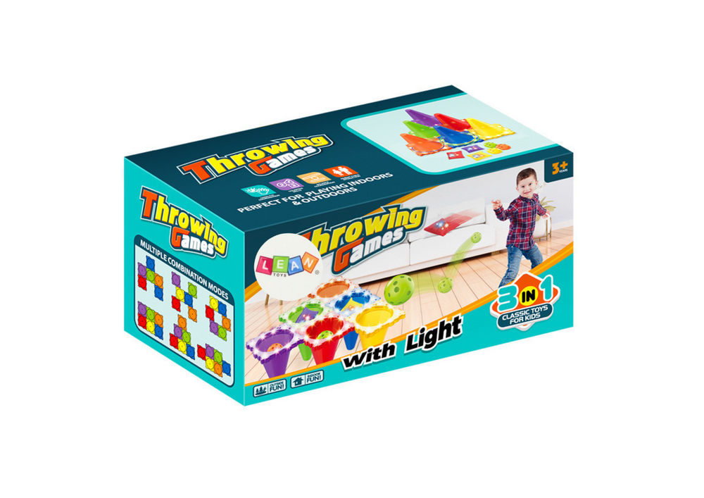 Sportinių vikrumo žaidimų rinkinys „3-in-1“ yra universalus rinkinys, suteikiantis daug aktyvių ir kūrybiškų pramogų tiek namuose, tiek kieme. Jį sudaro kūgiai, atliekantys taikinio funkciją, ir trys skirtingi daiktai, kuriuos galima mesti: lankai, maišai ir kamuoliai. Dėl šios įvairovės rinkinį galima naudoti įvairiais būdais - nuo klasikinių įgūdžių žaidimų iki savų iššūkių ir užduočių sugalvojimo.