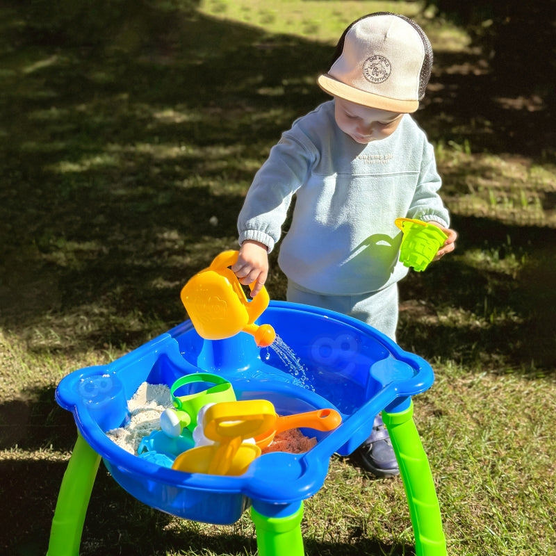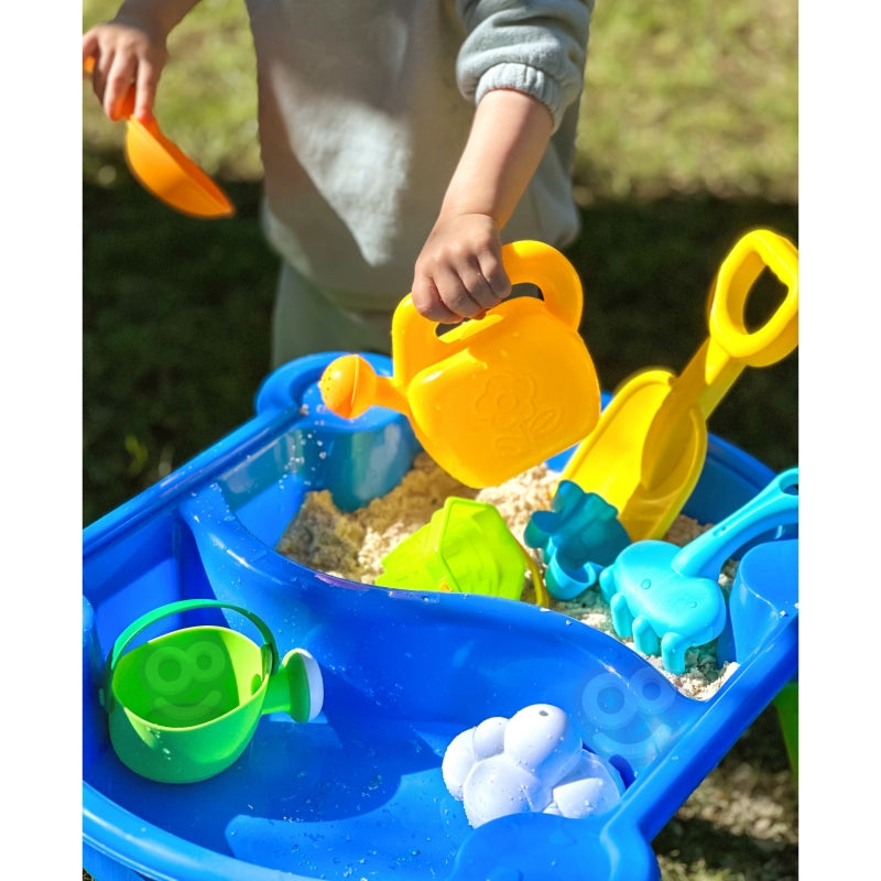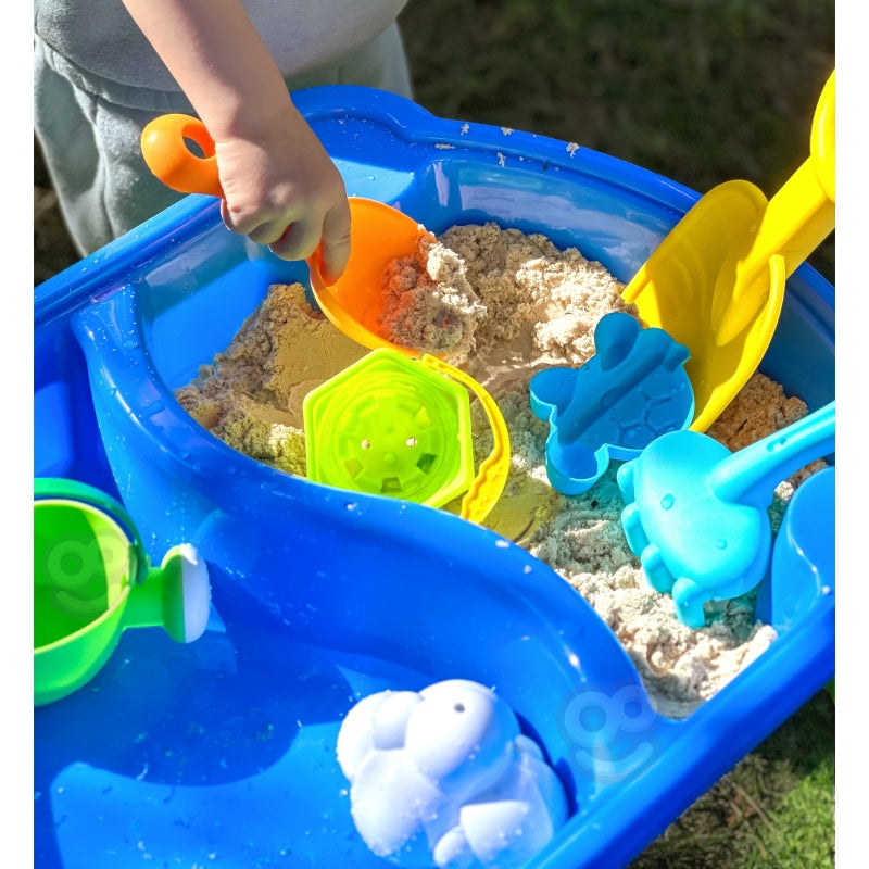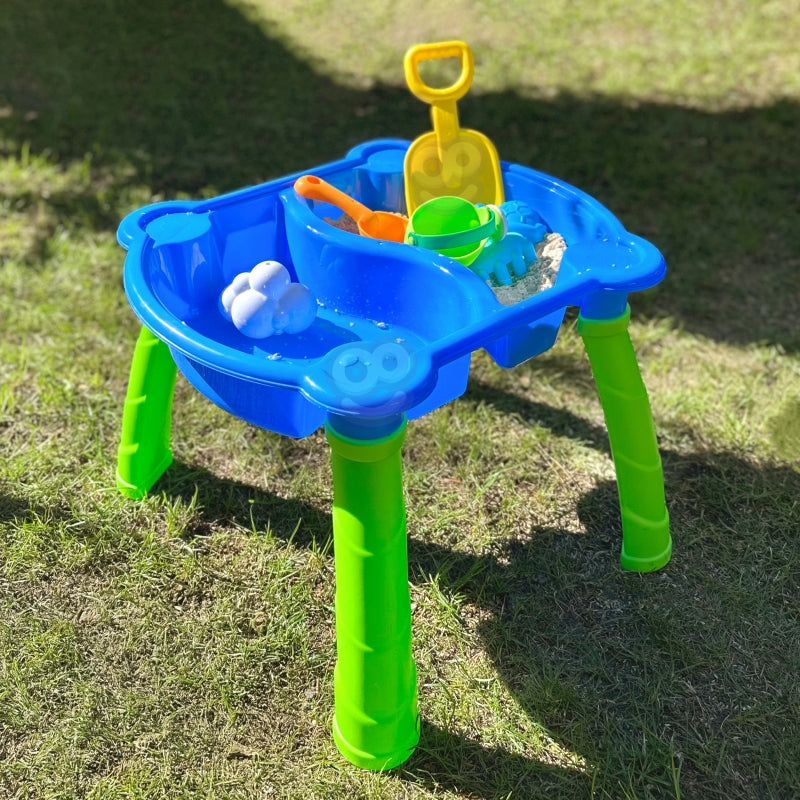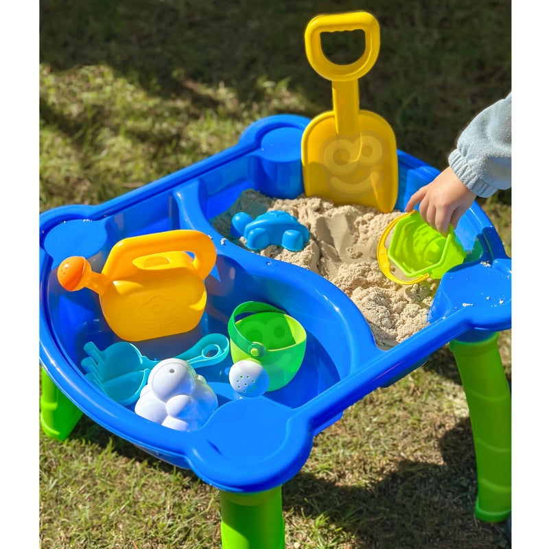 Prekės ženklo WOOPIE vandens smėlio stalas yra puikus žaislas su vandeniu ir smėliu. Stalas padalytas į dvi dalis, į vieną galima pilti vandenį, o į kitą - smėlį. Rinkinys skirtas žaisti tiek viduje, tiek lauke. Idealiai tinka žaisti patalpose ir paplūdimyje ar smėlio dėžėje.