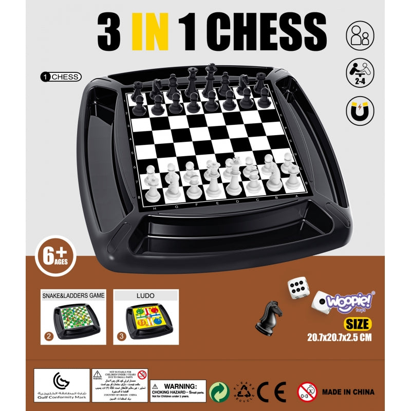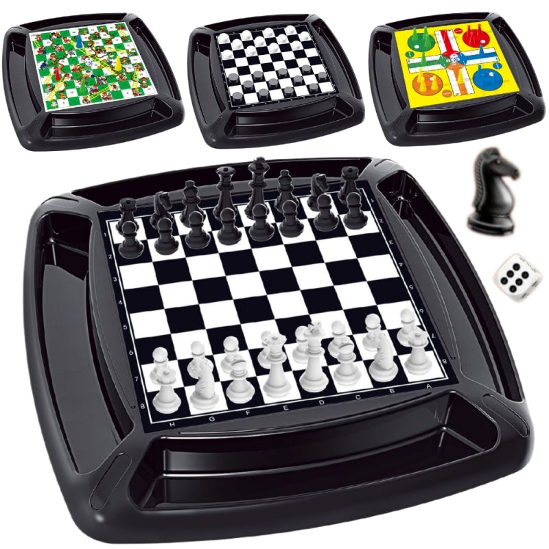 Sensacingas WOOPIE prekės ženklo stalo žaidimų rinkinys - tai gaminys, kuris užtikrins, kad jums nebus nuobodu ! 3 lentos, 4 skirtingi žaidimai - pasirinkite tai, kas jums patinka. Lentos yra ant patogaus stovo, kuris užtikrina stabilumą žaidžiant. Kiekvienoje lentos pusėje padaryta niša, į kurią galima pastatyti pėstininkus.