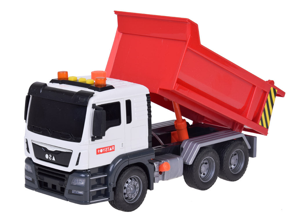 Statybinis sunkvežimis vaikams su pakeliama priekaba, garso ir šviesos efektais, raudonas