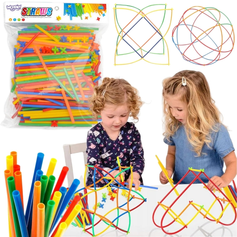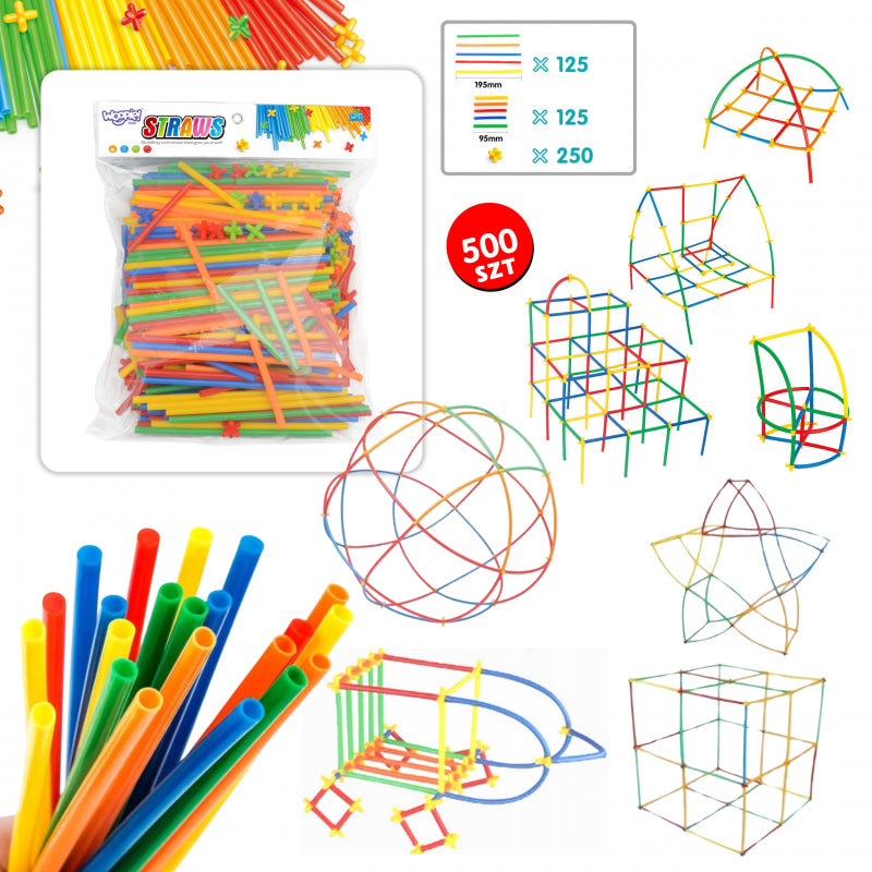 Statybinių šiaudelių rinkinys vaikams 500 vnt., WOOPIE