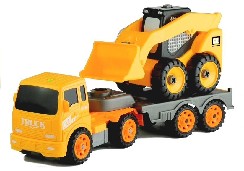 Pristatome statybinių transporto priemonių rinkinį, kurį sudaro ekskavatorius, priekaba ir įrankiai. Šis žaislas bus sensacinga dovana mažajam statybų entuziastui, kuris aistringai domisi įvairiomis transporto priemonėmis. Klasikinių žaislinių automobilių derinys su galimybe surinkti ir išardyti atskirus elementus pavers žaislą puikiu smagiu užsiėmimu ilgoms valandoms.