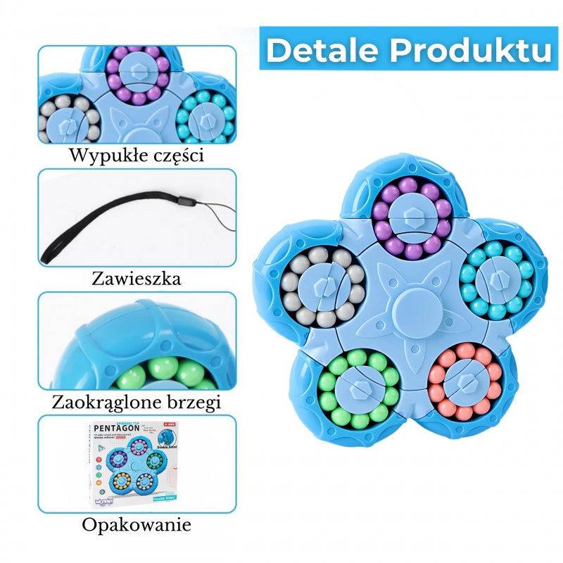 „Magic Beans Puzzle Pentagon“ iš „Woopie“ – tai neįprastas loginis žaislas, kuris jungia antistresinio galvosūkio ir edukacinio žaidimo funkcijas. Dėl dvipusių pusių ir spalvotų rutuliukų vaikai gali sukti ir judinti elementus įvairiomis kryptimis, kad sukurtų savo kombinacijas. Žaislas skatina koncentraciją, loginį mąstymą ir kūrybiškumą, taip pat turi atpalaiduojantį poveikį.