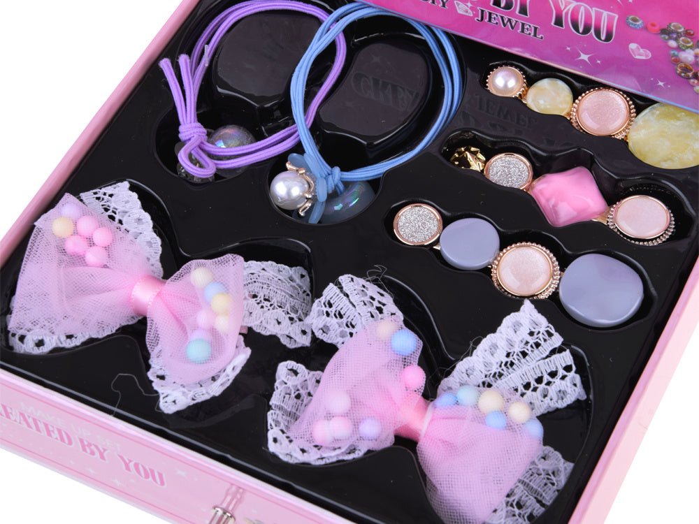 Sulankstoma papuošalų dėžutė su karoliukais ir plaukų aksesuarais