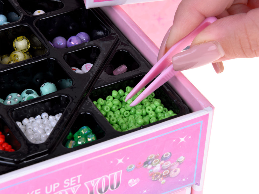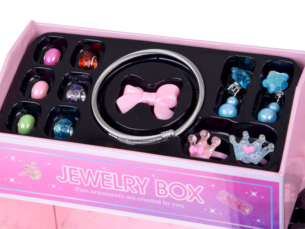 Sulankstoma papuošalų dėžutė su daugybe karoliukų, pakabukų, talismanų ir plaukų aksesuarų – tai kiekvienos mergaitės svajonės išsipildymas! Ji leidžia mažosioms ponios jaustis kaip suaugusi. Mergaitės mėgsta stebėti, kaip jų mamos ruošiasi išeiti, dažosi, šukuojasi ir tvarkosi plaukus... ir, svarbiausia, jas imituoja. Su šiuo gausiai įrengtu rinkiniu lengva sukurti unikalius aksesuarus ir kasdien atrodyti stilingai.