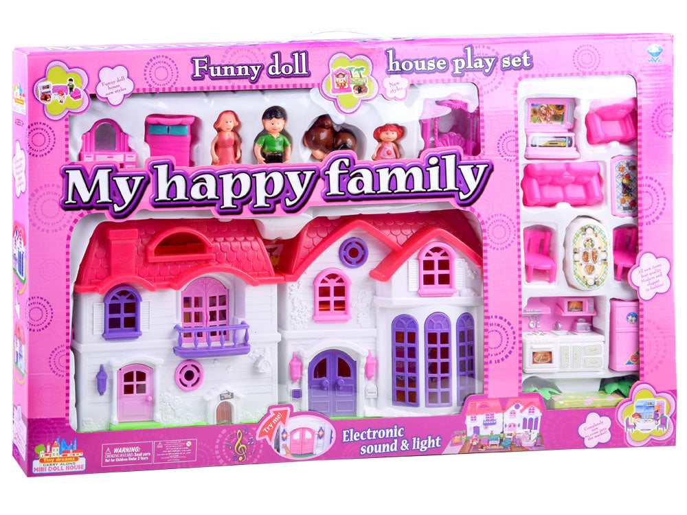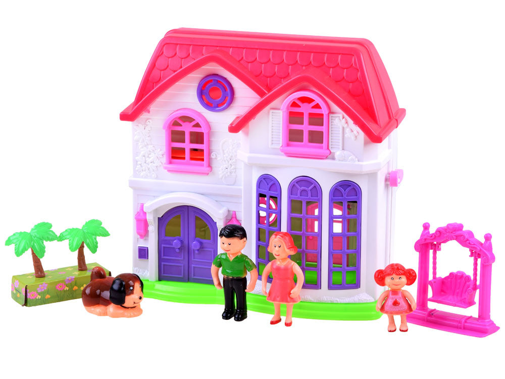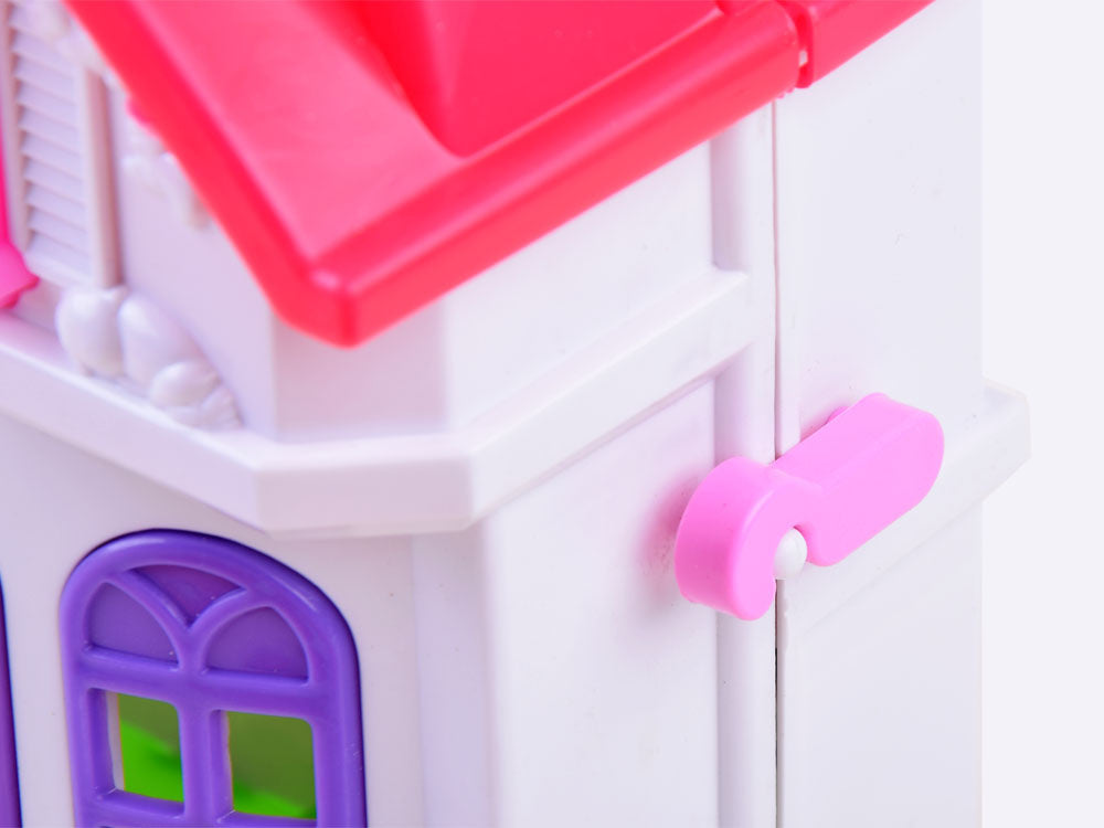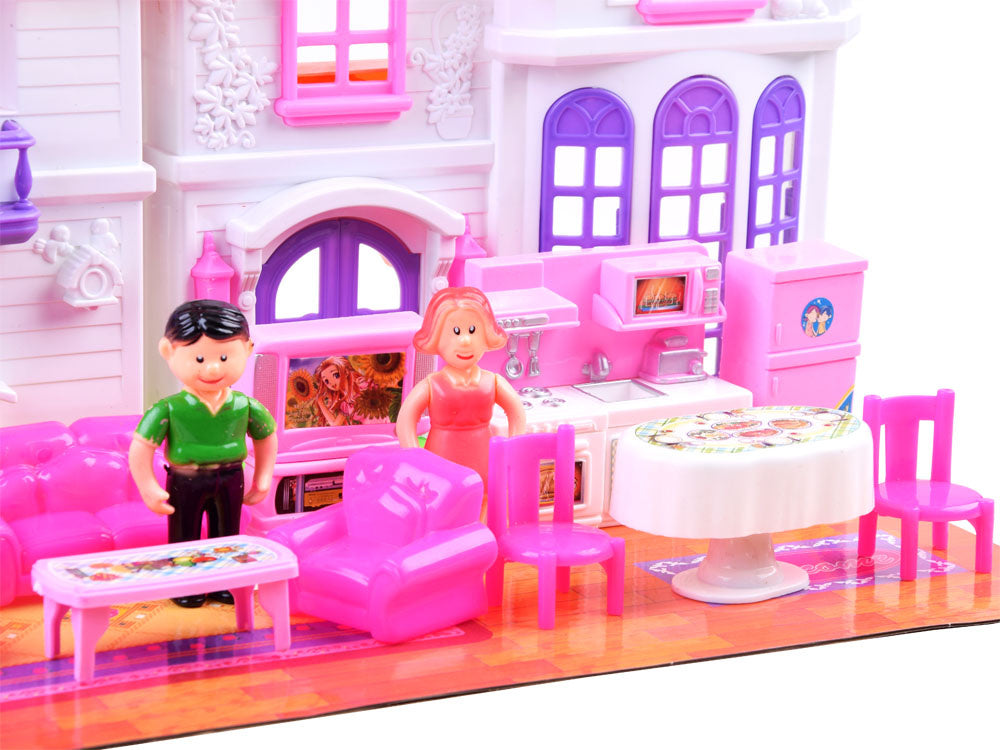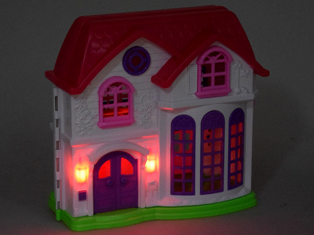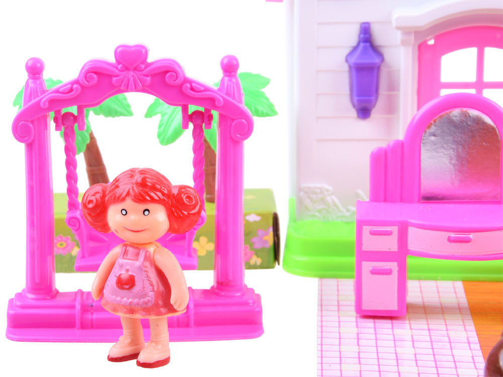 Elegantiškas lėlių namelis kiekvienam vaikui suteiks daug džiaugsmo. Kiekviename aukšte vaikas gali susikurti individualų kambario vaizdą, naudodamasis rinkinyje esančiais lipdukais ir įvairiais baldais. Papildomas privalumas - skambutis su šviesos efektu, kurio dėka visada žinosite, kad kažkas įeina į namą. Rinkinys supakuotas į kartoninę dėžutę, todėl puikiai tinka dovanai.