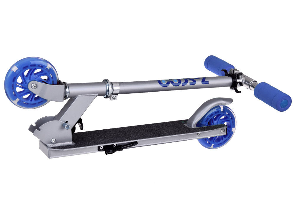 Sulankstomas paspirtukas su šviečiančiais ratais, mėlynas