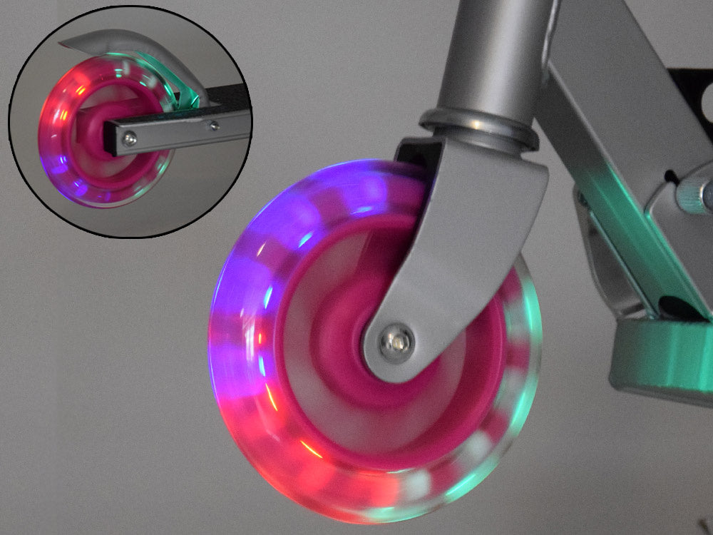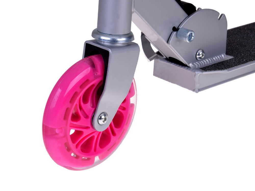 Sulankstomas paspirtukas su šviečiančiais ratais, rožinis