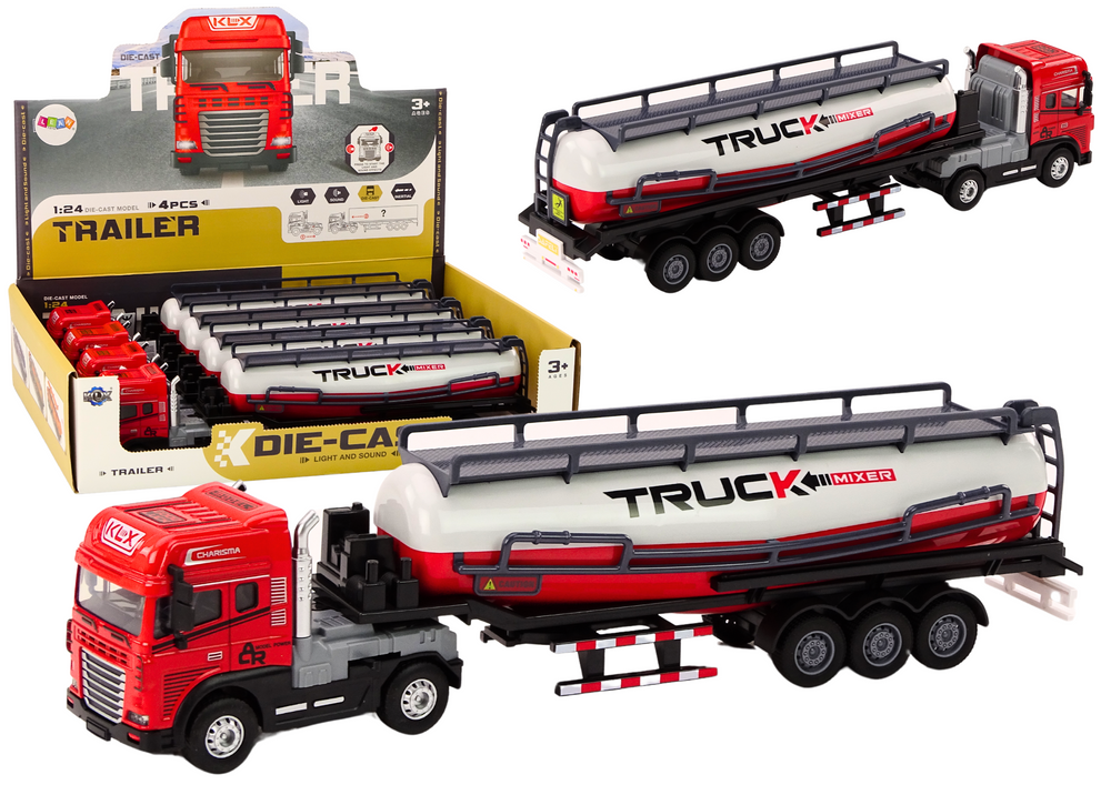Sunkvežimio su cisternos priekaba modelis yra tiksliai atkurta 1:24 mastelio transporto priemonė, turinti daugybę funkcijų, dėl kurių ji yra tikroviška ir patraukli žaisti. Autocisternos modelis yra tikroviškas ir universalus žaislas, kuriame funkcionalumas derinamas su tikros transporto priemonės atkūrimo tikroviškumu.