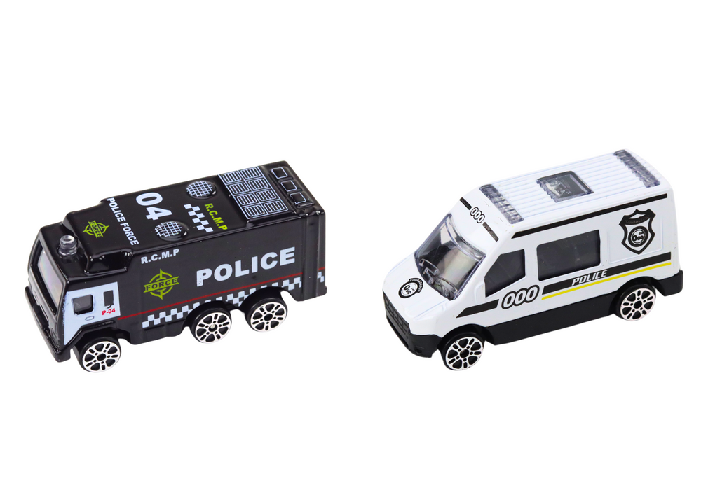 Pristatome naujovišką žaislą, kuris sujungia sunkvežimį ir lenktynių trasą viename. Šis universalus žaislas suteikia valandų valandas įdomių pramogų, nes juo galima vežti automobilius ir rengti jaudinančias lenktynes. Pagrindinis atrakcionas – išlankstomas sunkvežimis, kuri išskleista virsta ilga trasa. Taip vaikai gali susikurti savo lenktynių trasą, kuri puikiai dera su pridedamais automobiliais. Rinkinyje yra du 1:64 mastelio policijos automobiliai.