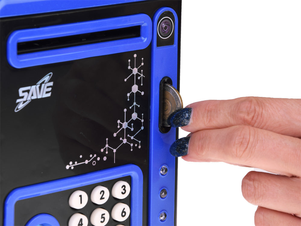 Seife galima laikyti banknotus ir monetas. Tiesiog įkiškite banknotą į pailgą skylutę ir banknotas bus įvilktas į vidų. Kai banknotą praryja taupyklė, pasigirsta linksma melodija. Monetų anga yra seifo priekyje ir viršuje.