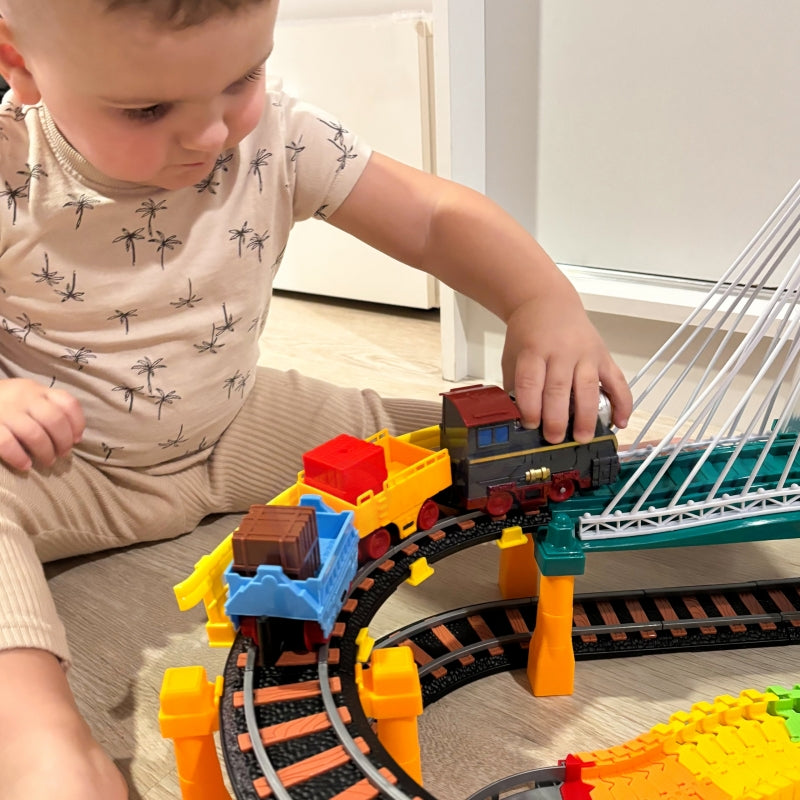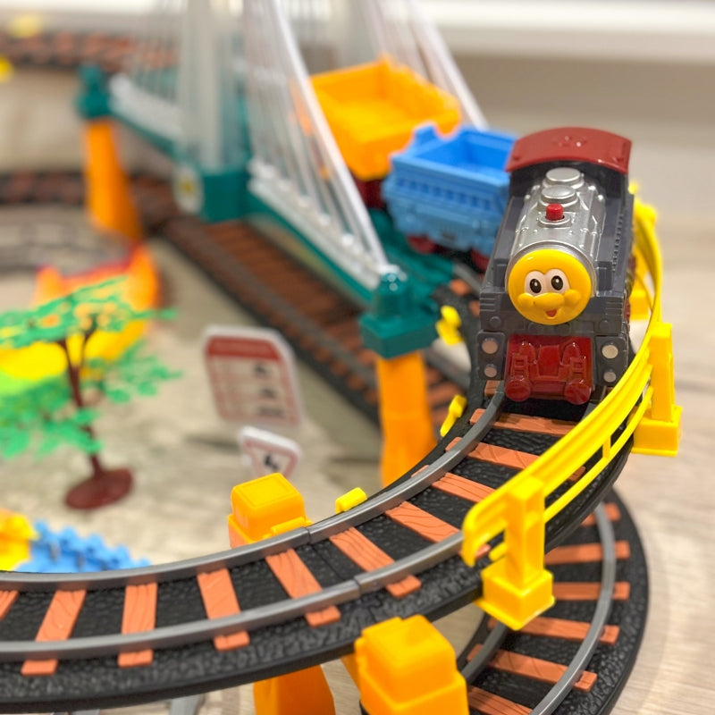 Įspūdinga WOOPIE lenktynių trasa buvo sukurta galvojant apie mažuosius automobilių lenktynių gerbėjus! Transporto priemonės juda atskirais takeliais, todėl šis nuostabus rinkinys yra žaislas „du viename“. Traukinys turi 2 vagonus, kuriuose mažas geležinkelininkas gali padėti krovinį. Trasos yra nepriklausomos - galima važiuoti ir traukiniu, ir automobiliu. Į komplektą įtrauktas viadukas užsidega važiuojant keltuvu. Spalvingos žaislo spalvos ir kokybė sukuria unikalią atmosferą ir suteikia jam autentišką išvaizdą. Į komplektą taip pat įeina medžiai ir kiti elementai, paįvairinantys trasos aplinką. Rinkinyje yra 192 elementai, įskaitant traukinį, automobilį ir lengvą pakeliamą tiltą. Papildomas rinkinio privalumas yra realus garsas. Žaislas yra visiškai saugus mūsų mažiesiems. Žaisdamas vaikas ugdo savo rankinius įgūdžius ir vaizduotę.