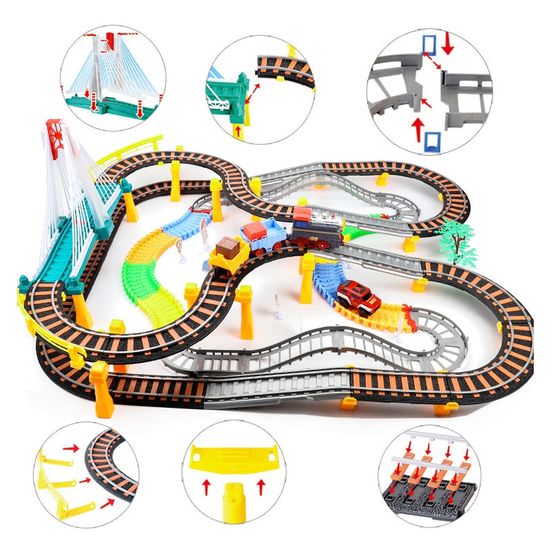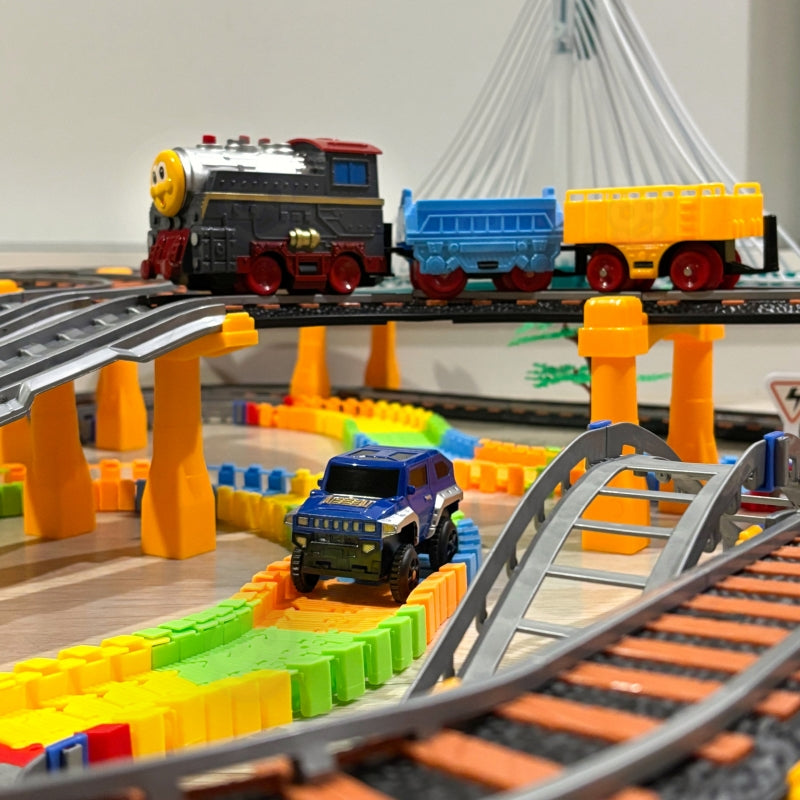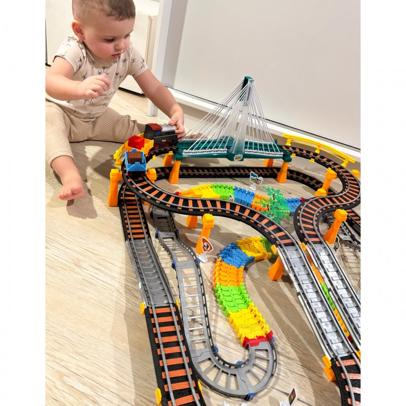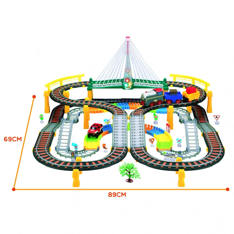 - dviejų lygių geležinkelis su viaduku / tiltu ir lenktynių trasa - net 192 elementai,